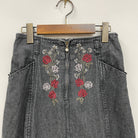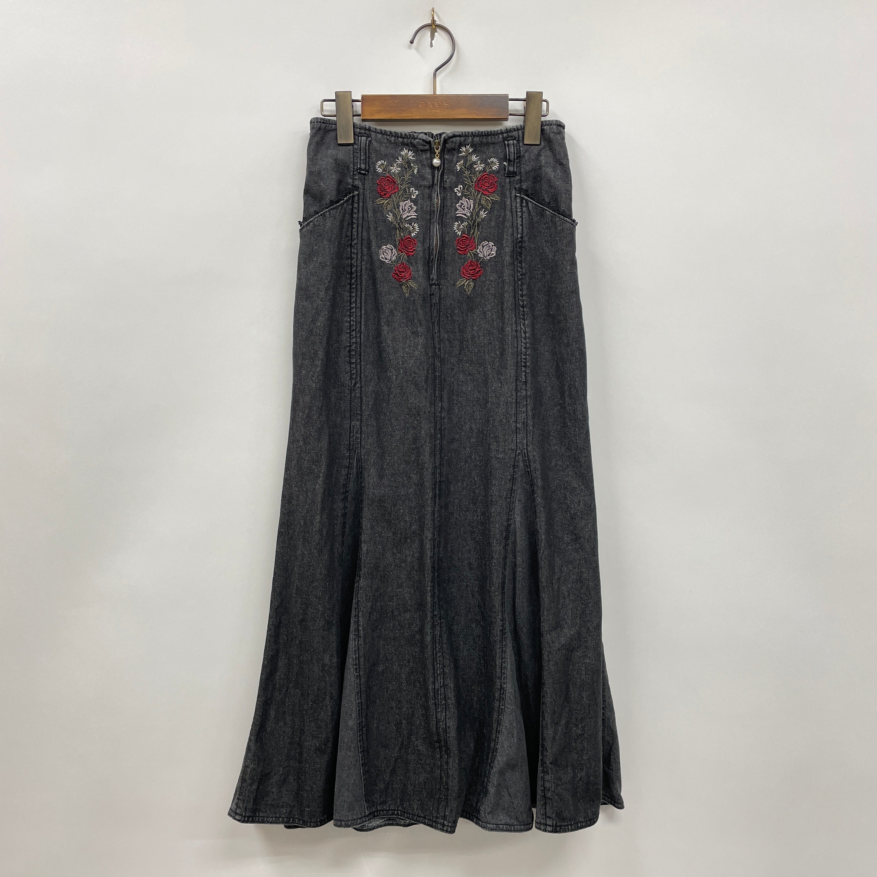 フロントに薔薇刺繍を施したデニム素材のマーメイドスカートです。