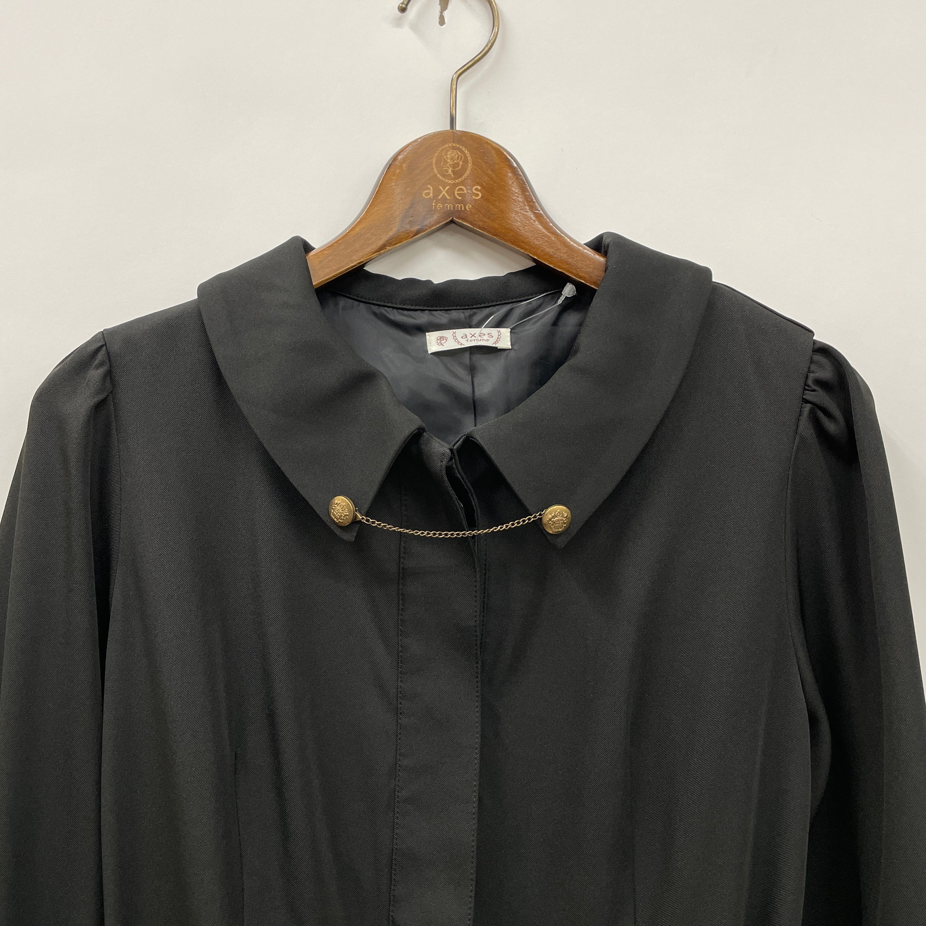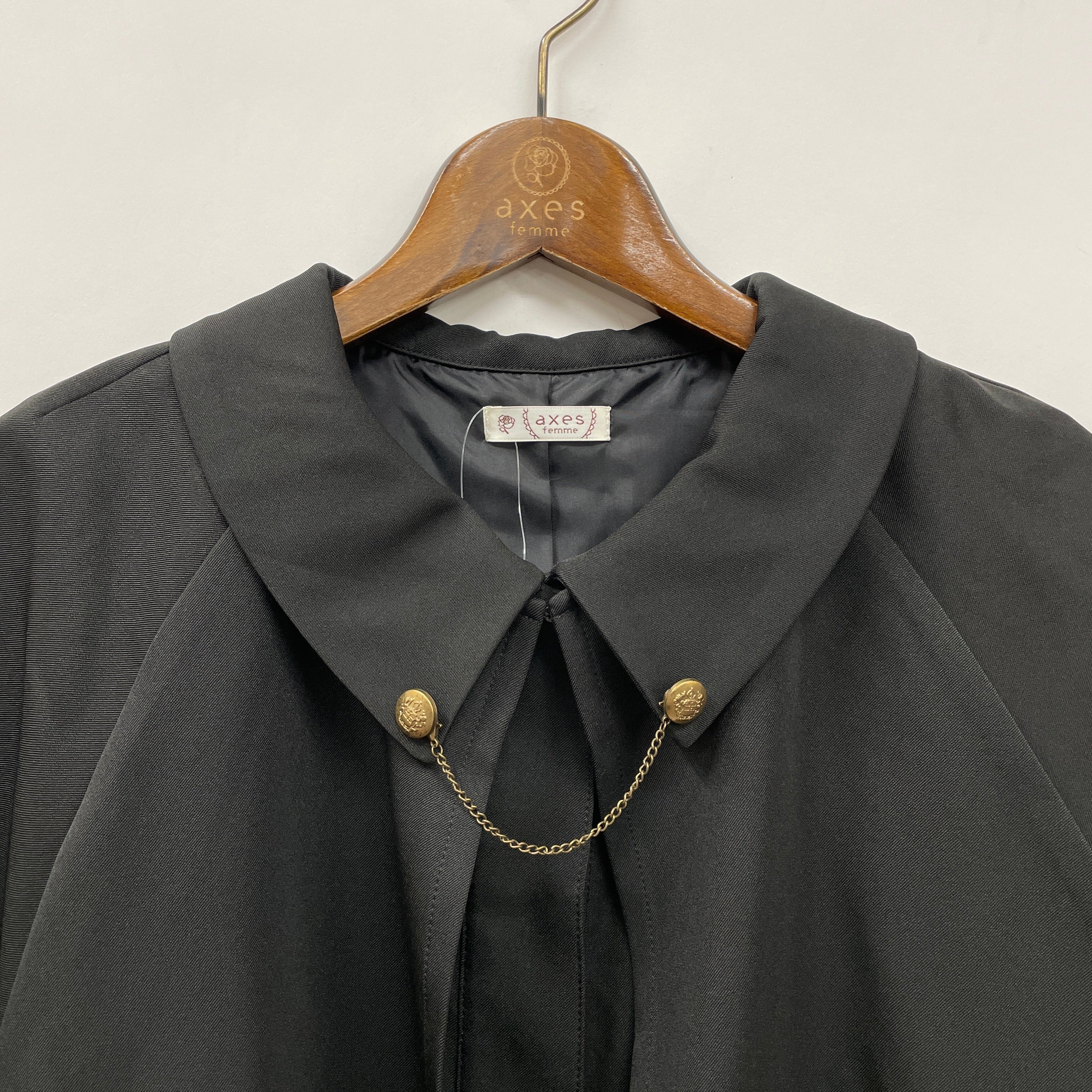 襟部分にはクラシカルなボタンとチェーンデザインでシックに仕上げました。
