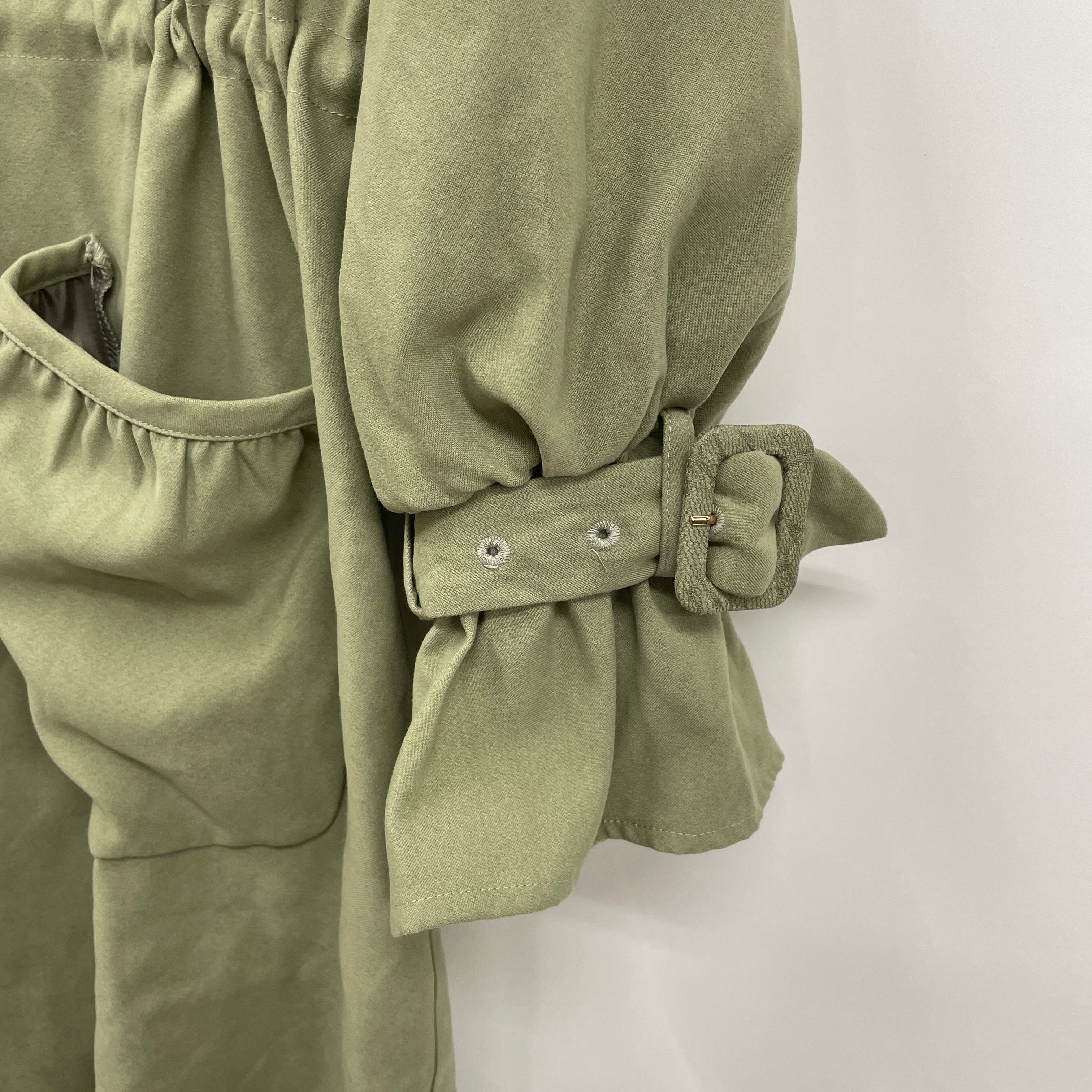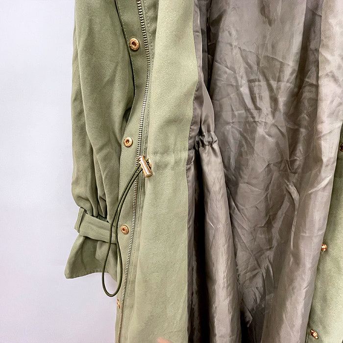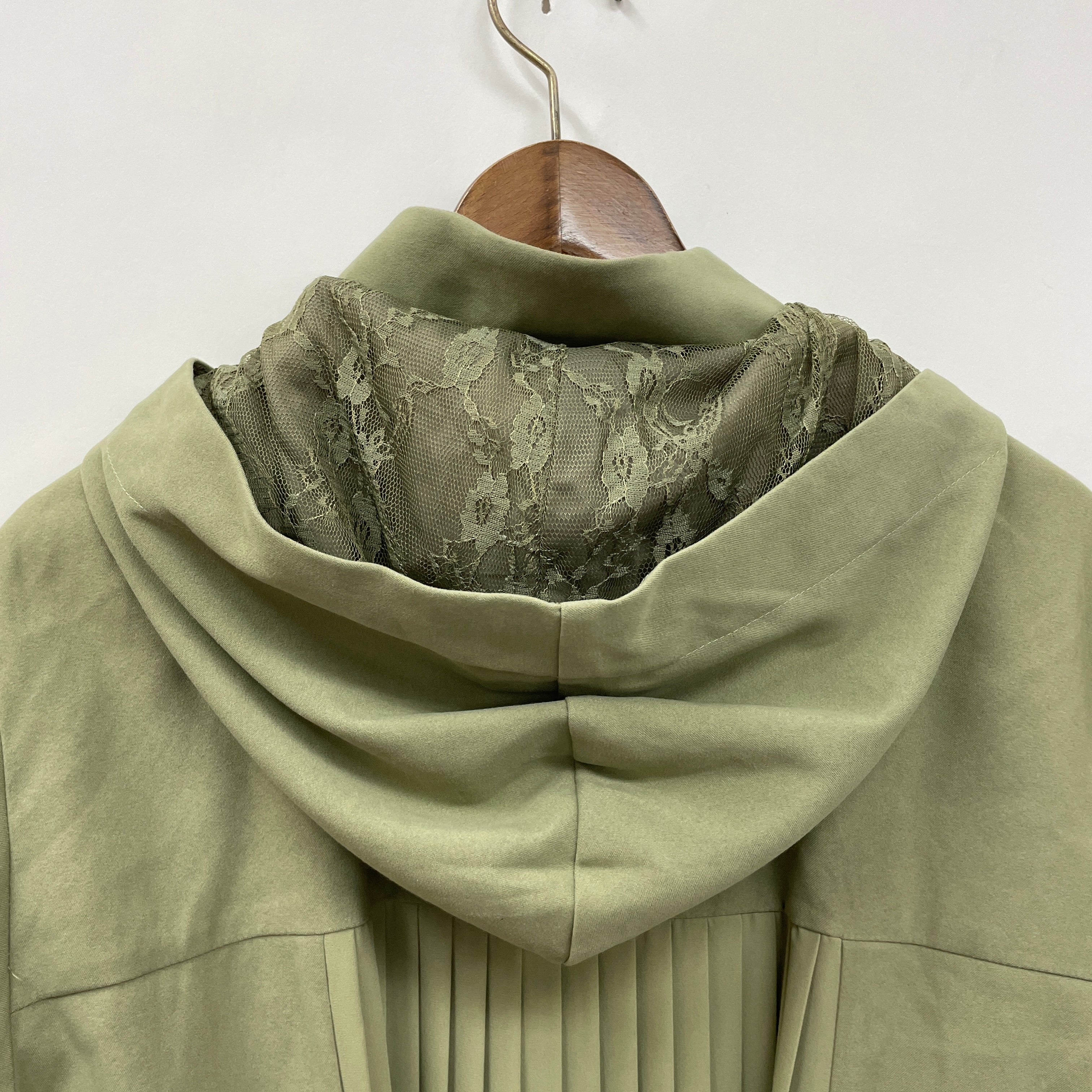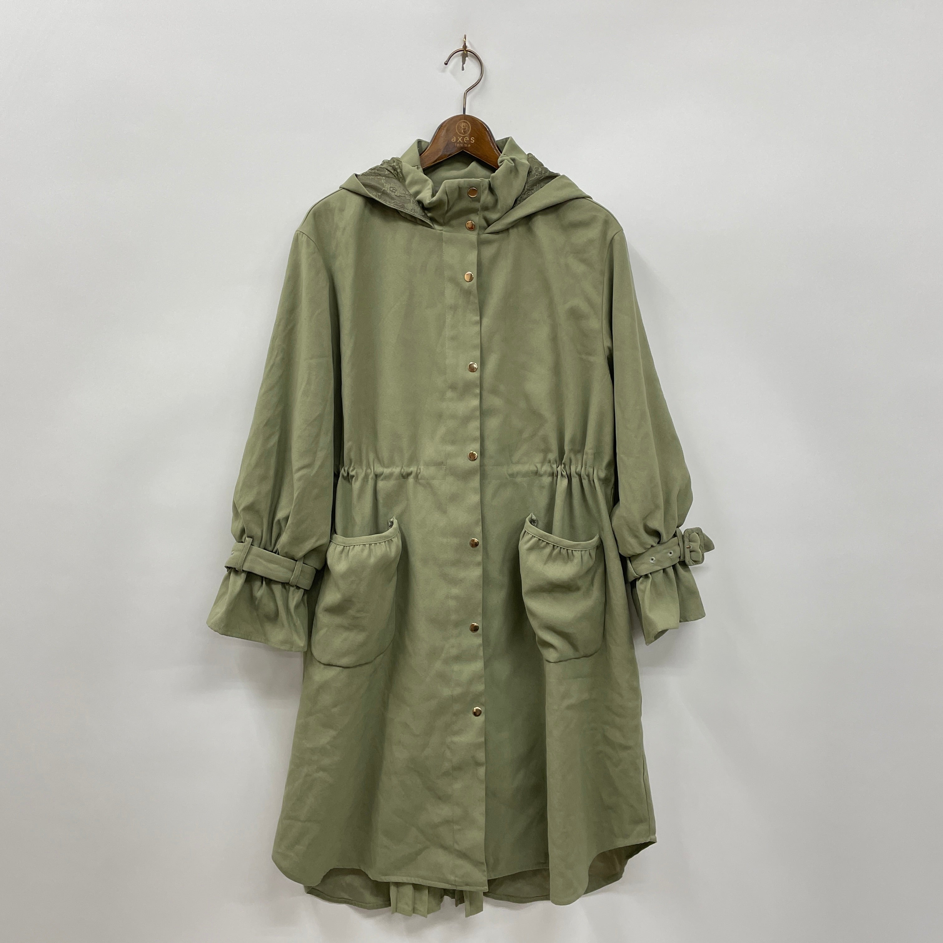 ピーチスキン調の素材感が柔らかいモッズコートです。バックプリーツデザインが新鮮でトレンドライクなポイント、大き目のポケットで利便性◎です。まだ肌寒い春先に使いおすすめコートです。