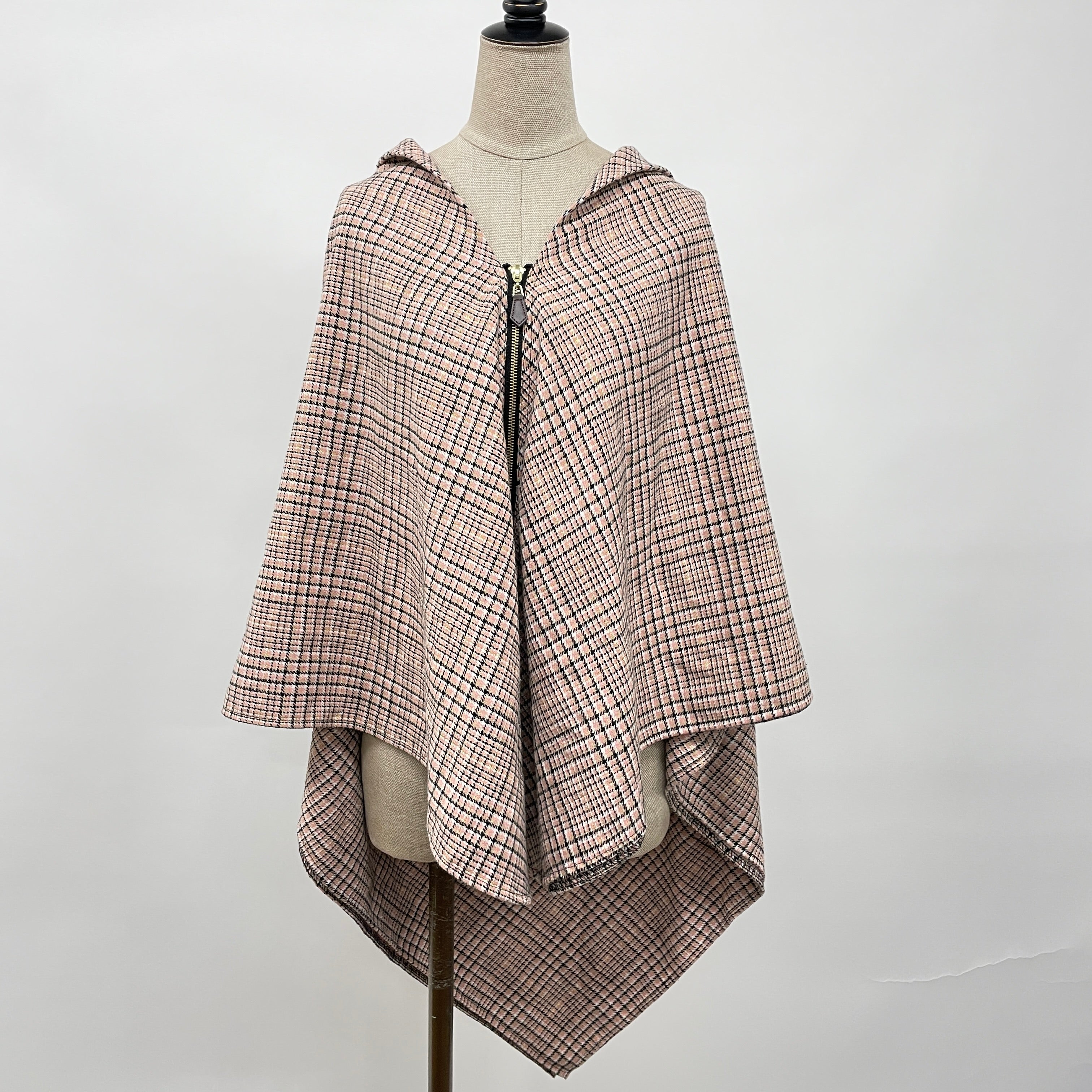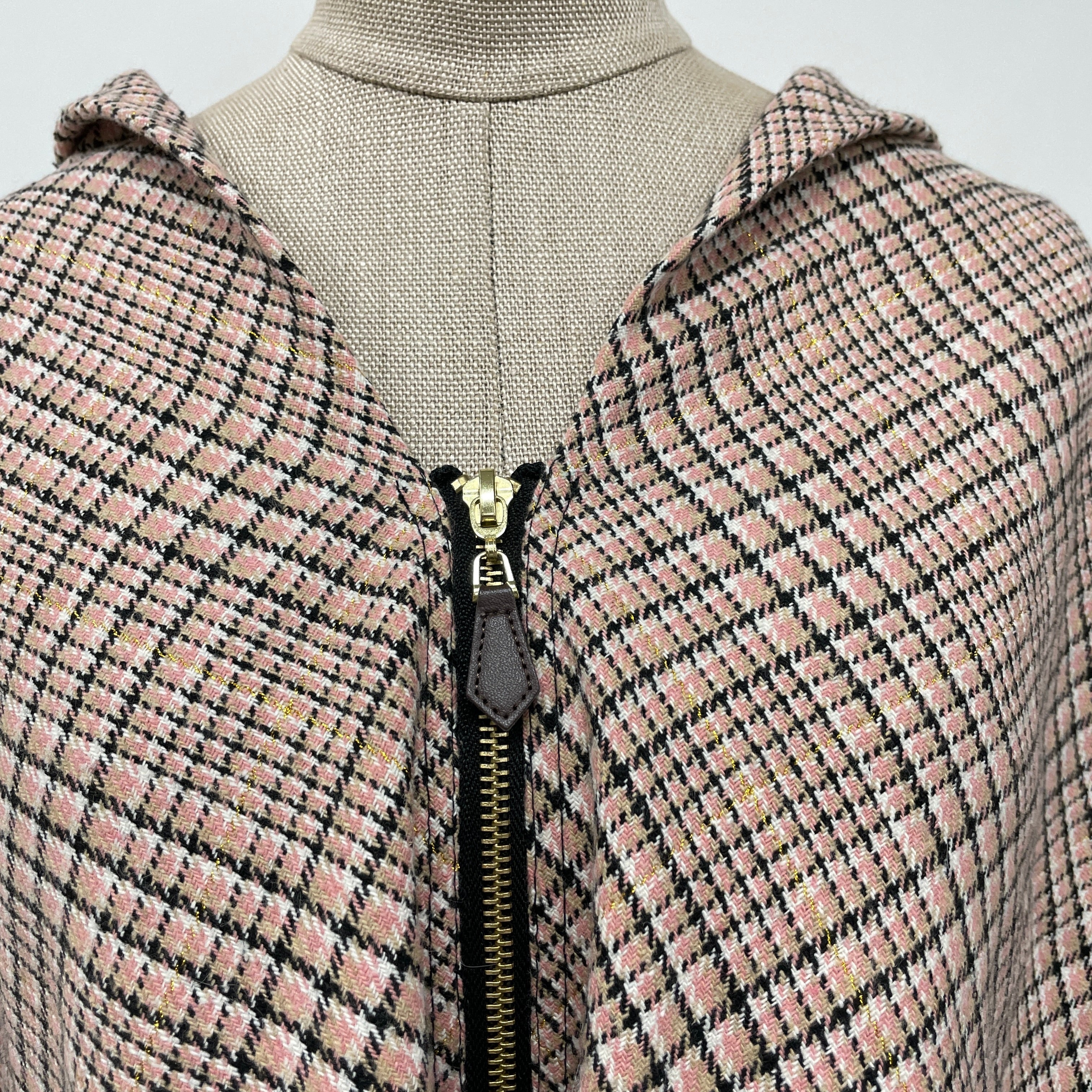 使いやすいグレンチェックの生地を使用したポンチョです。ジップアップデザインで閉めて着ても開けて羽織っても◎。軽めのアウターとしてもお使いいただけます。お揃いの生地を使用したバッグもご用意しています。