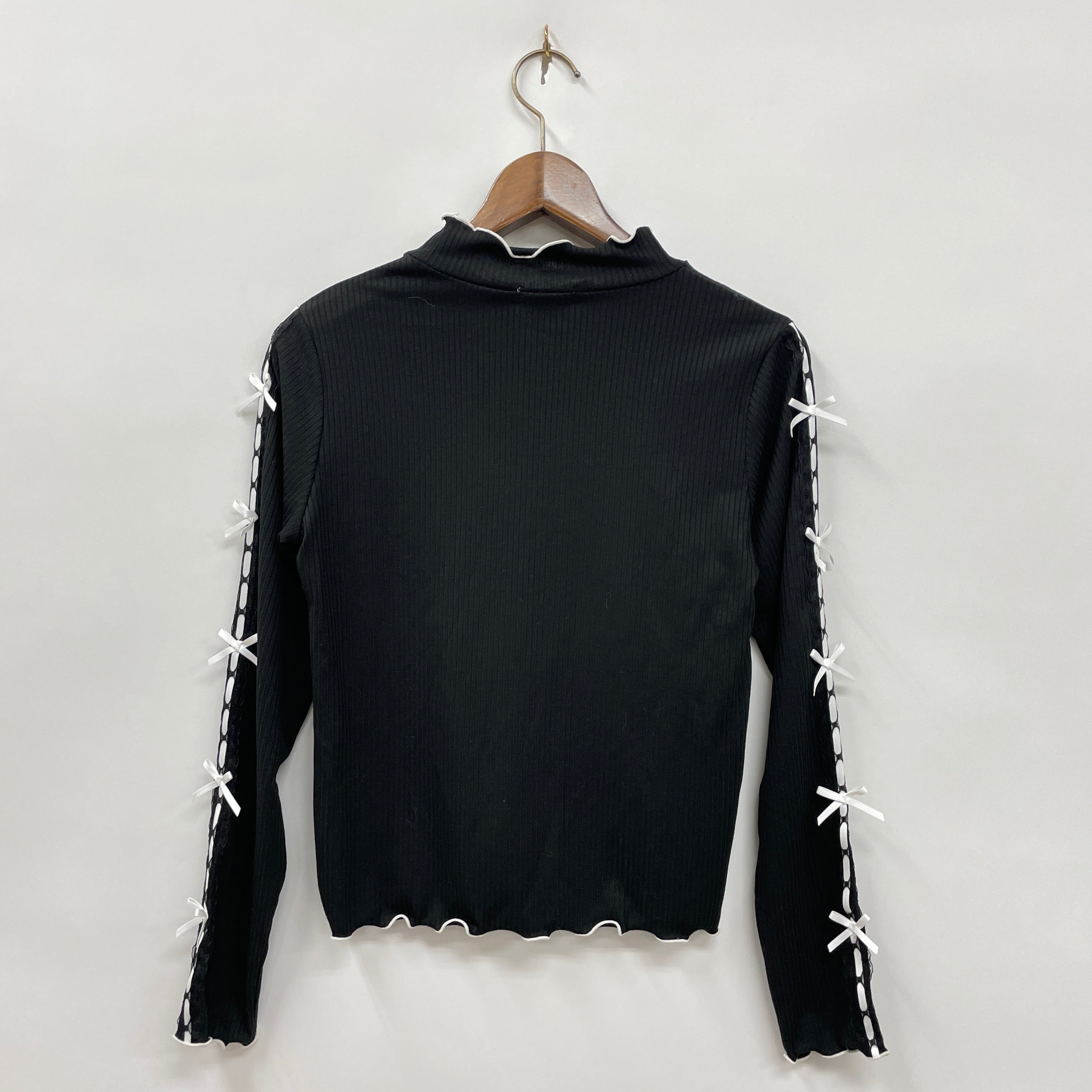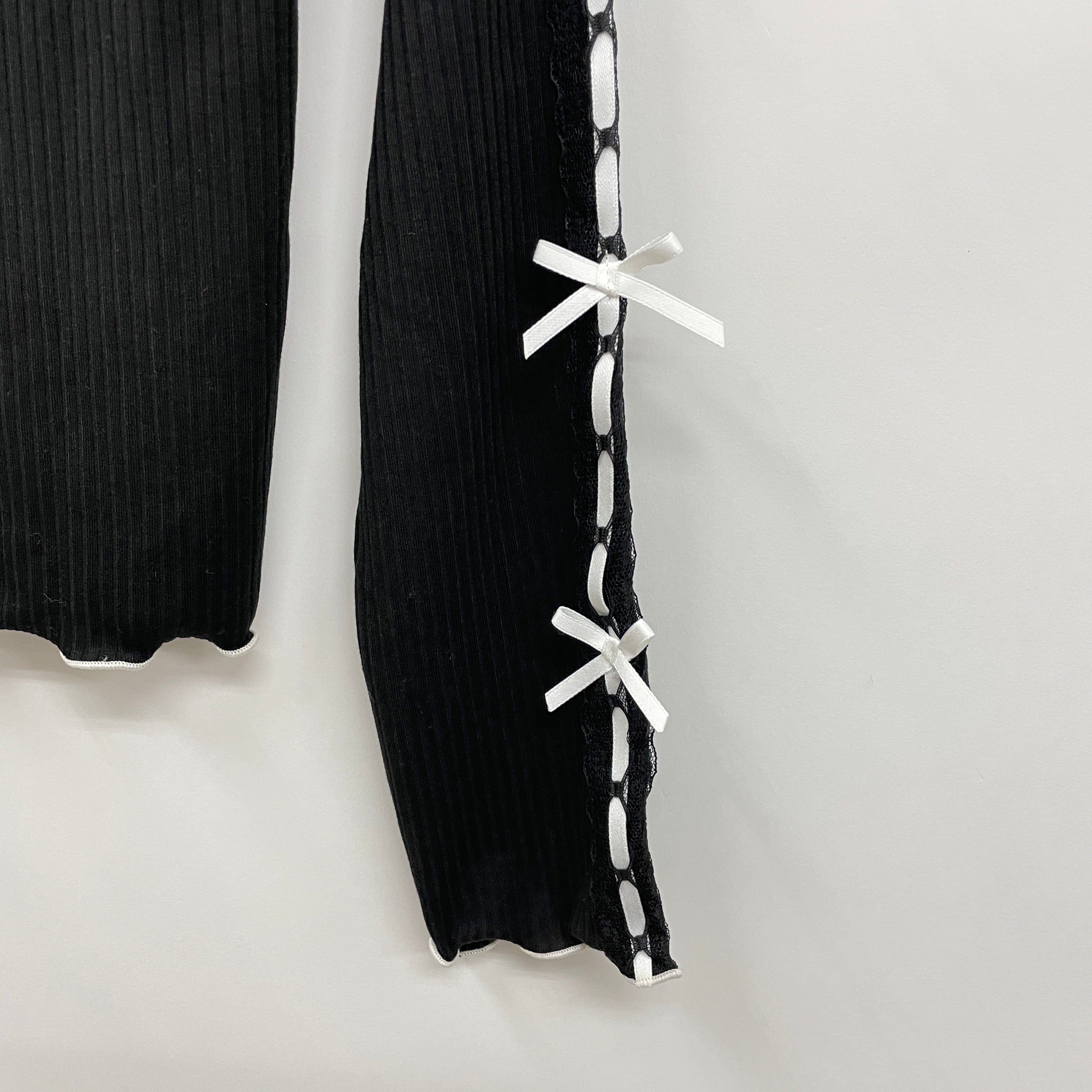 袖にあしらったリボンとハシゴレースがガーリーなポイント♪