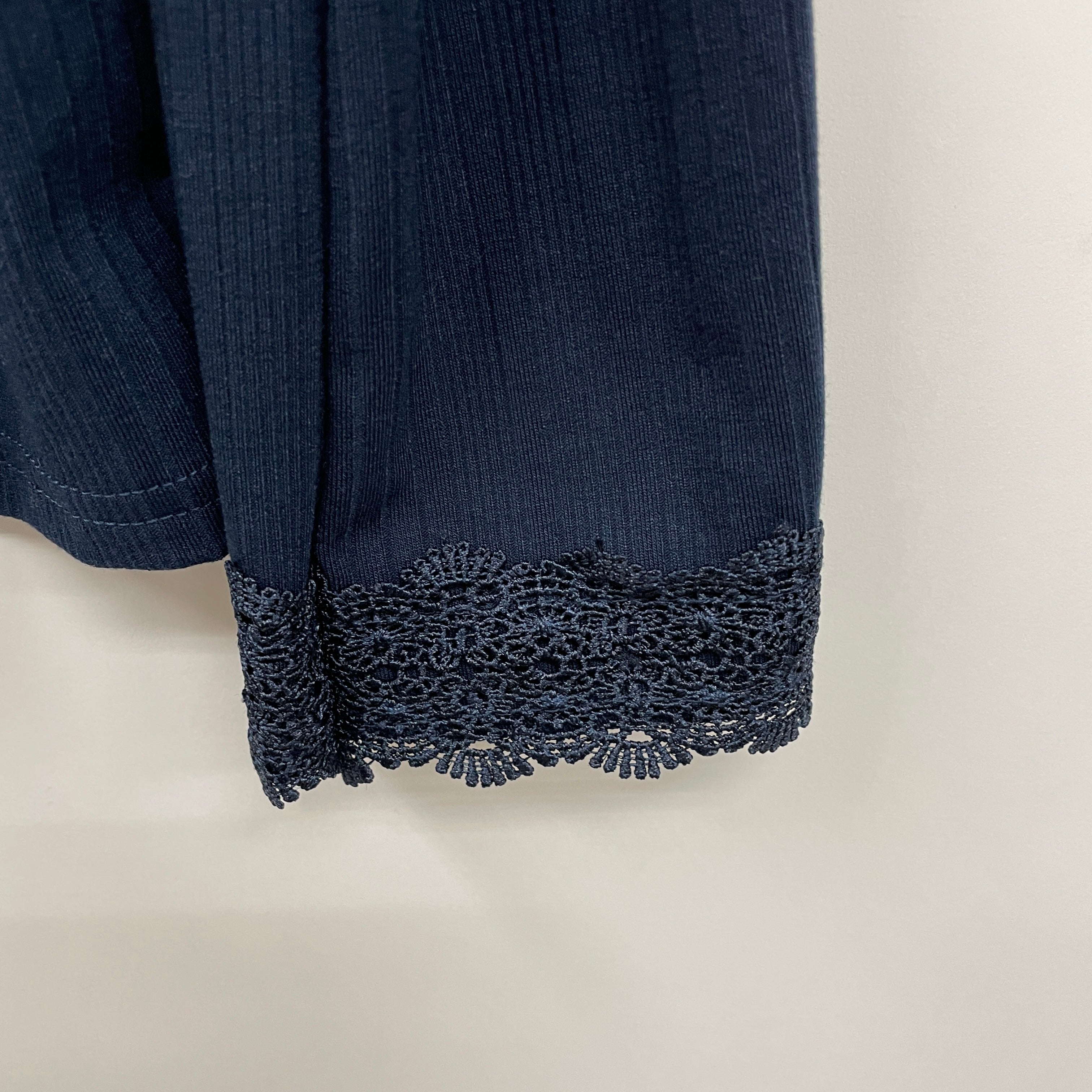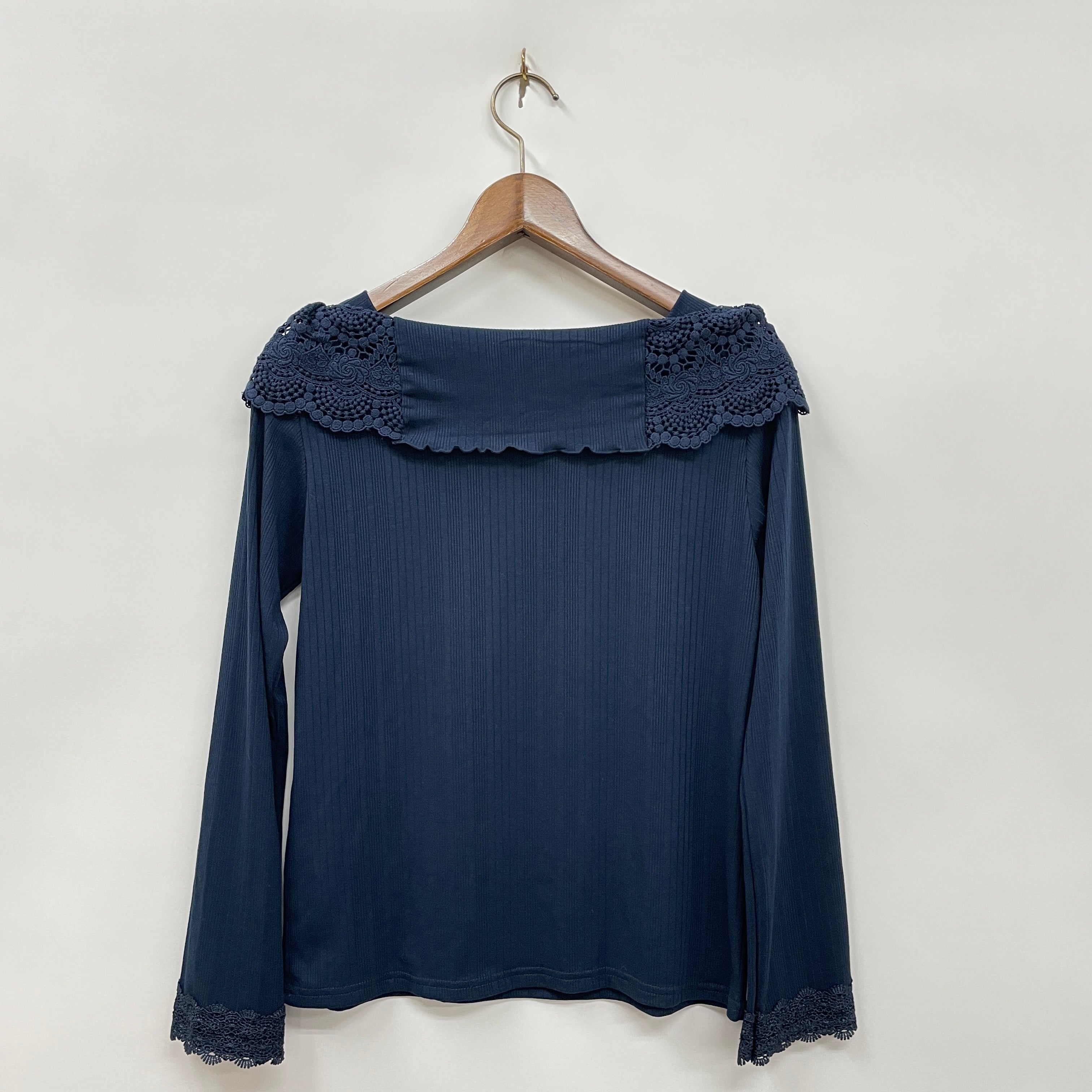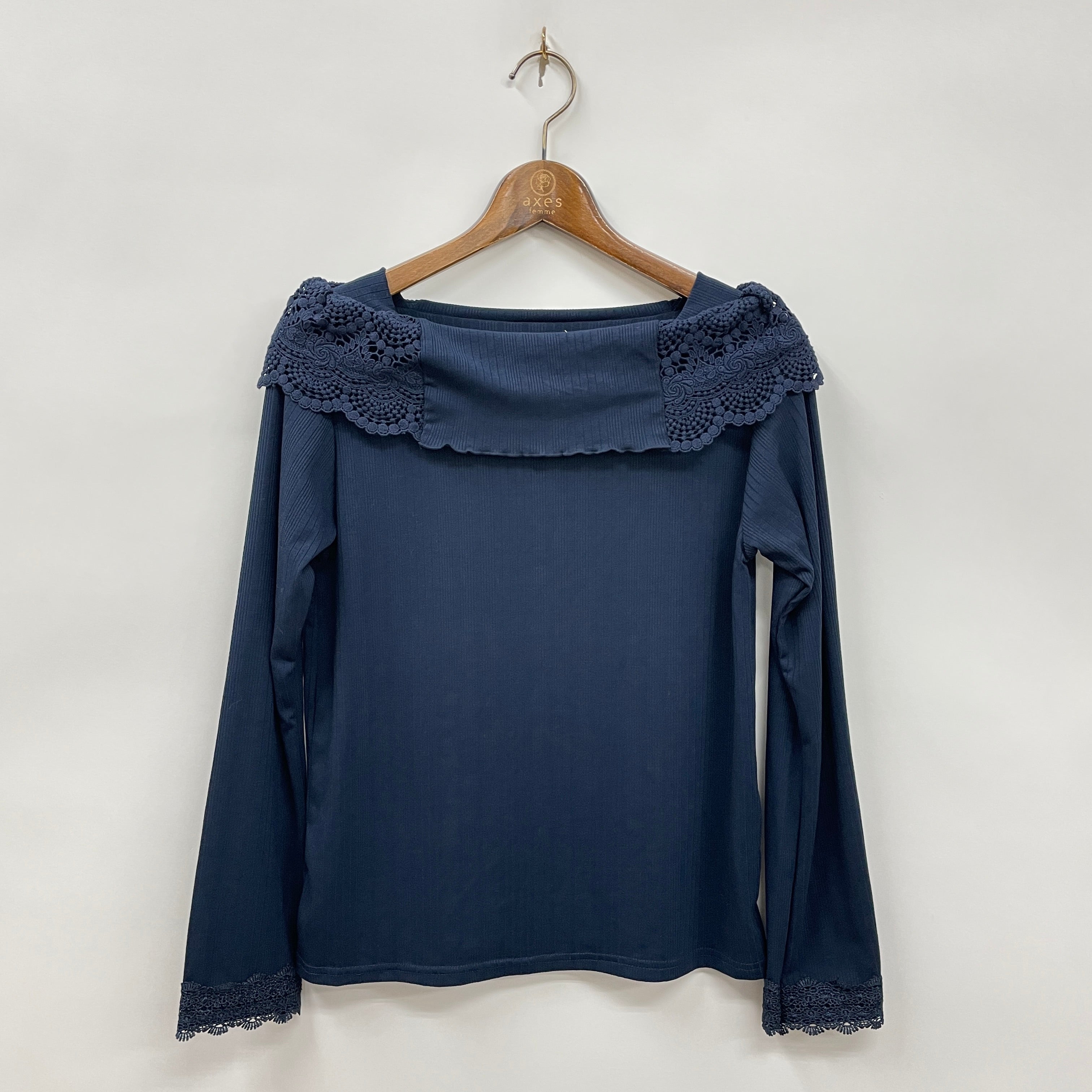 レースを合わせたオフショル風デザインの襟がポイントのプルオーバーです。