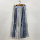 レース×チュールデザインのミディスカート。適度に落ち感があり大人っぽいシルエットを作り上げます。合わせるトップスでエレガンスにもカジュアルにも着こなせます。カラー使いが新鮮なアイテム。