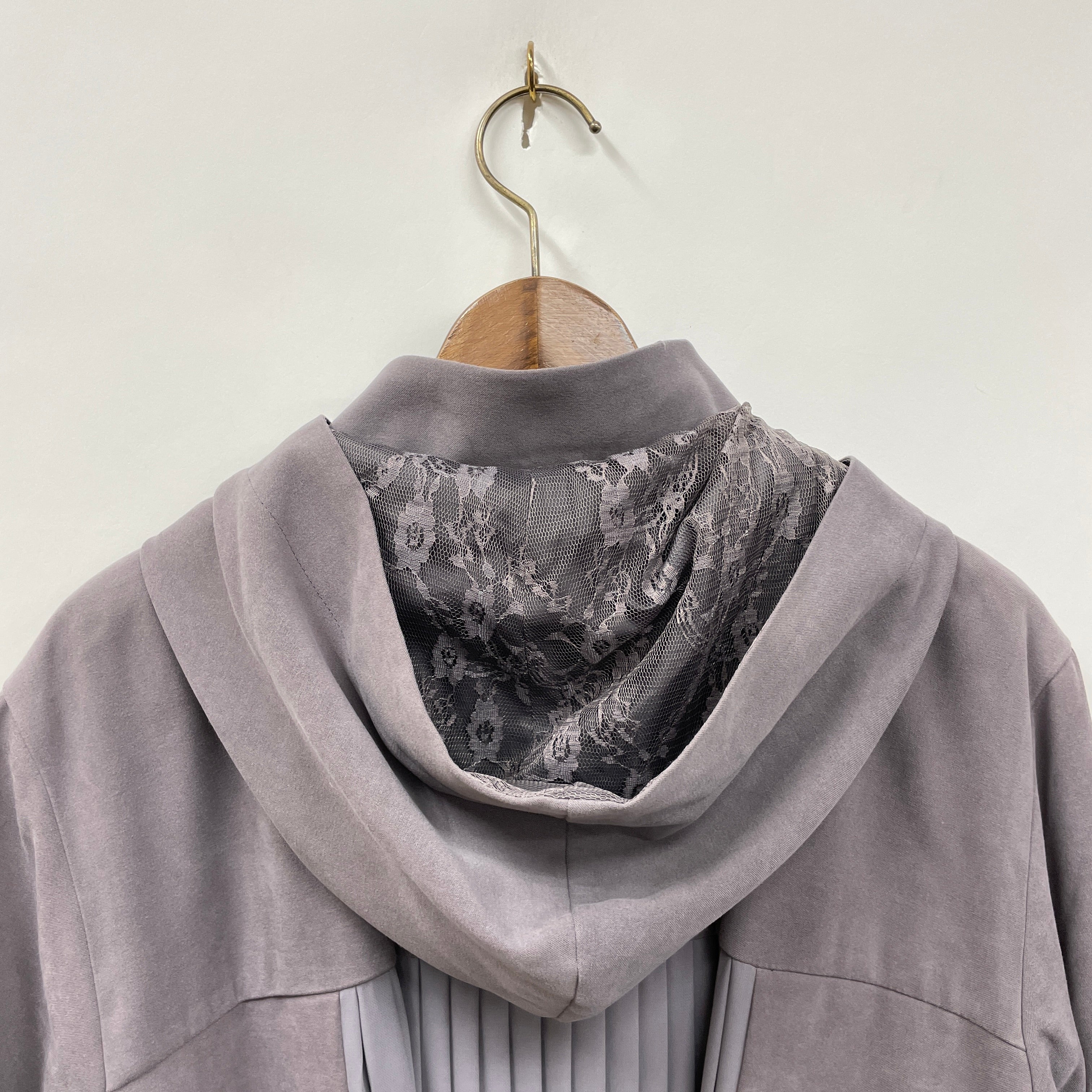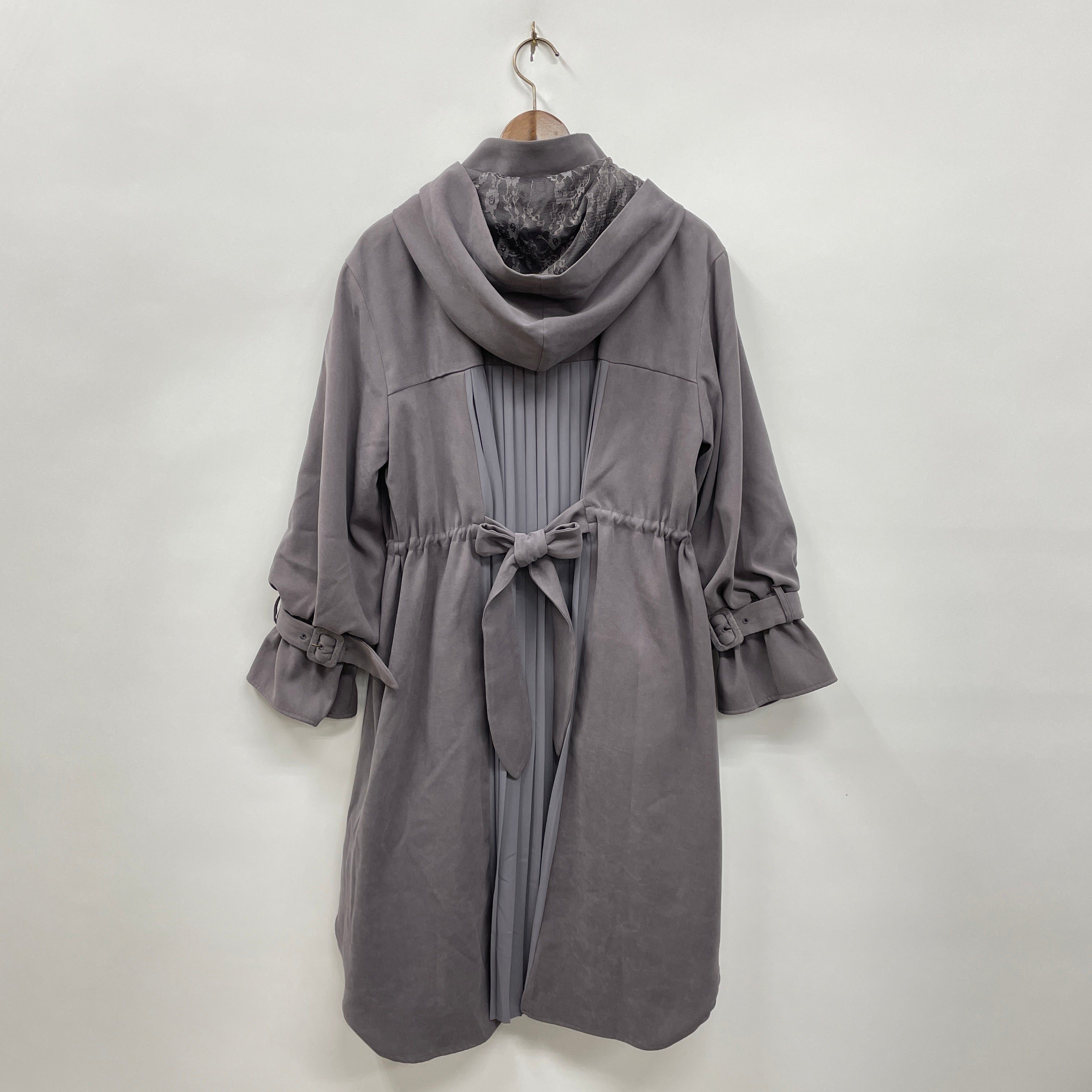 ピーチスキン調の素材感が柔らかいモッズコートです。バックプリーツデザインが新鮮でトレンドライクなポイント、大き目のポケットで利便性◎です。まだ肌寒い春先に使いおすすめコートです。