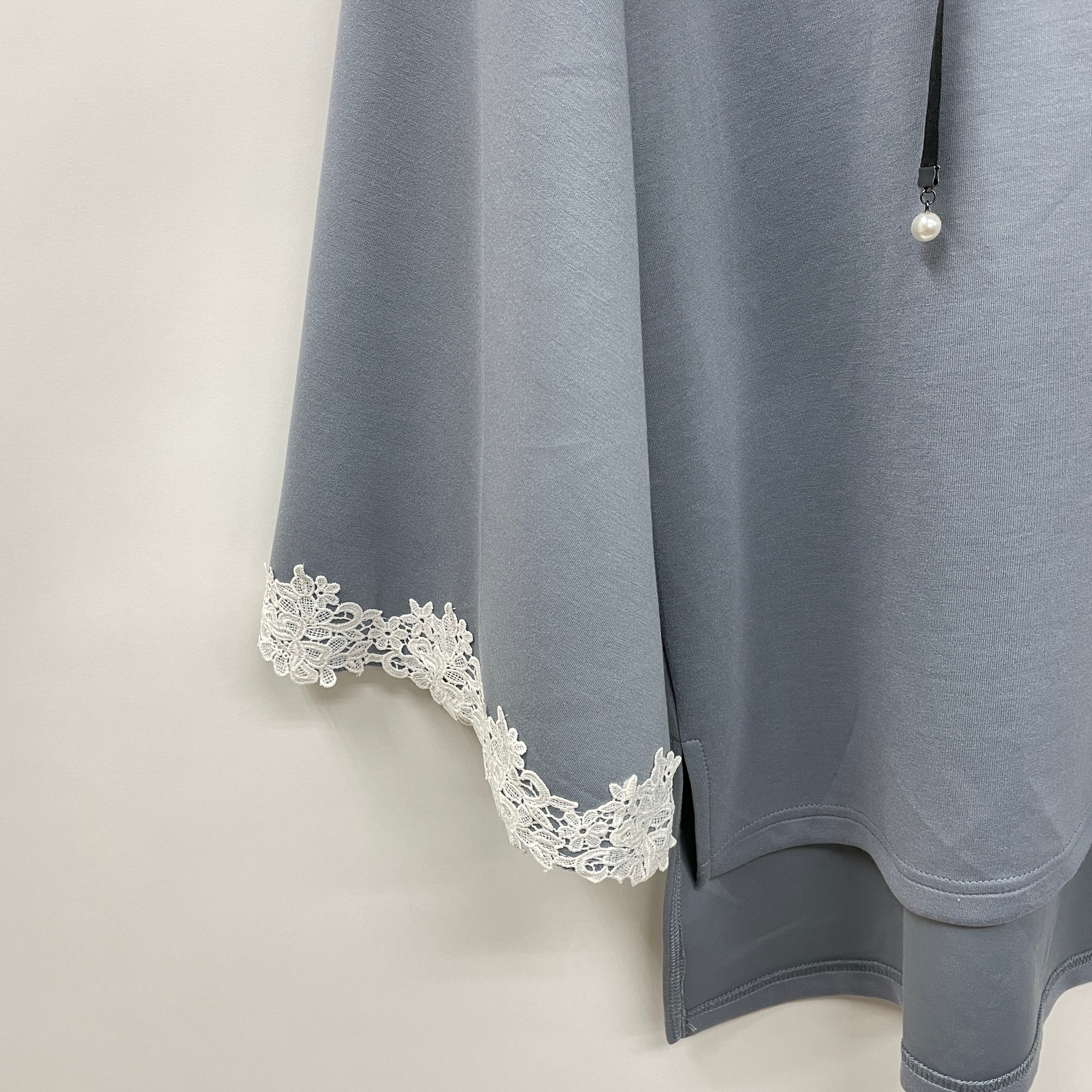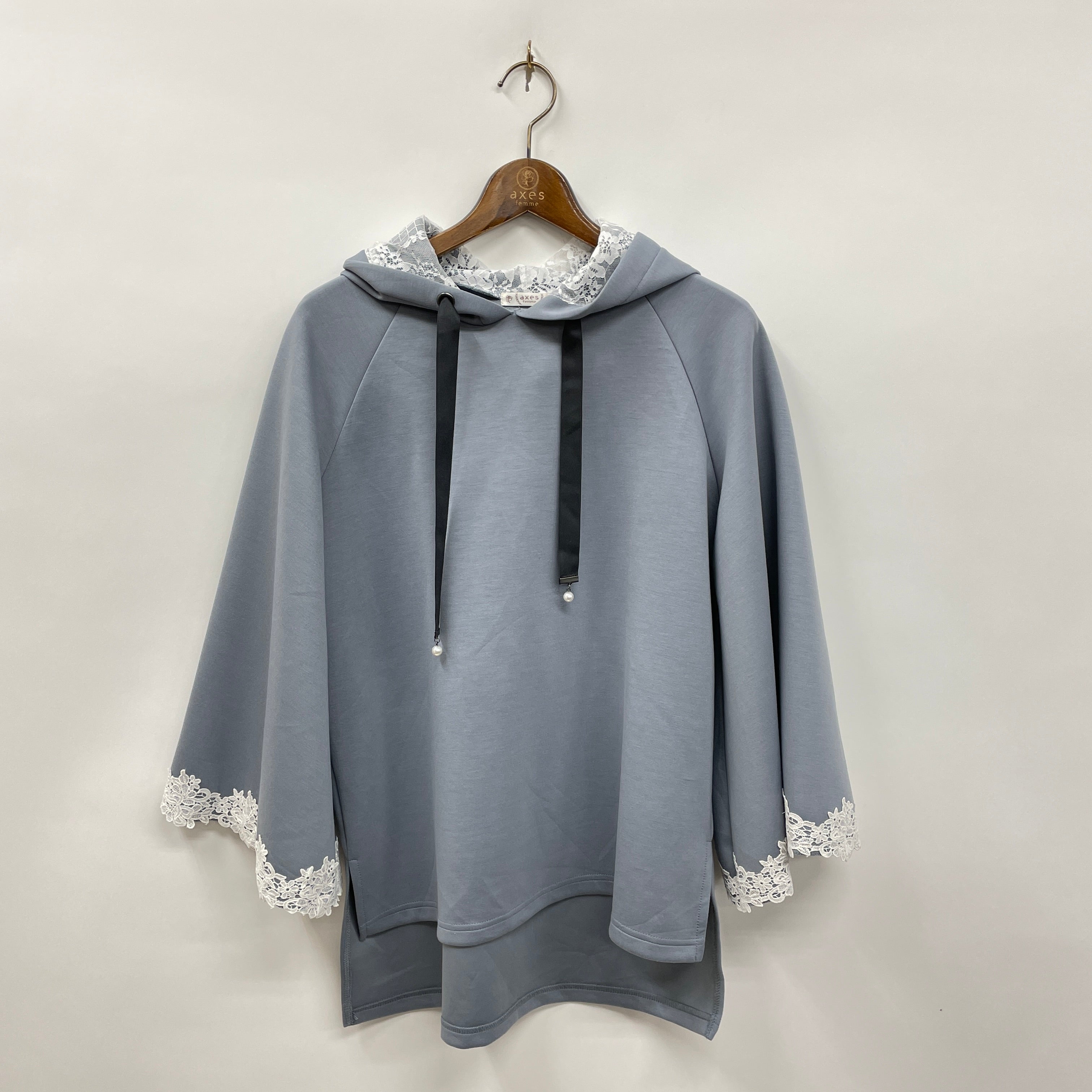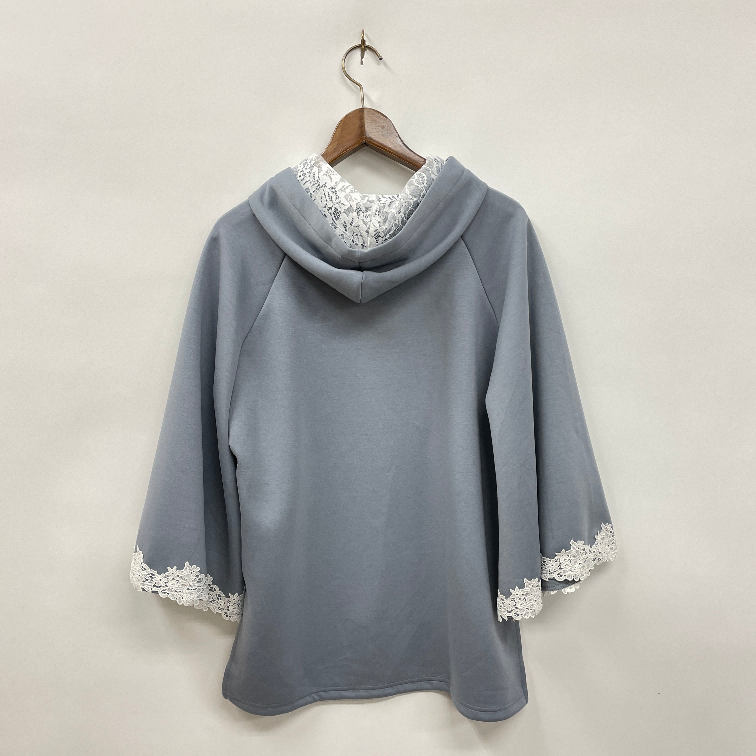 袖口やフード裏にはレースを使用しており、カジュアルアイテムながらもフェミニンな印象をプラス。