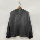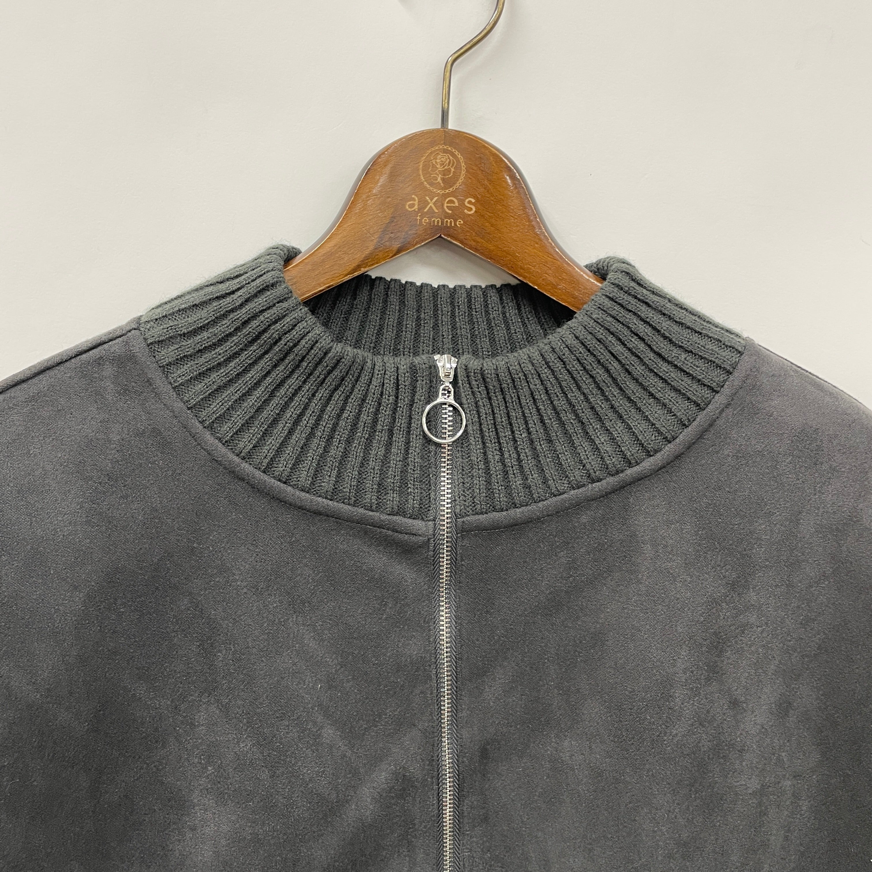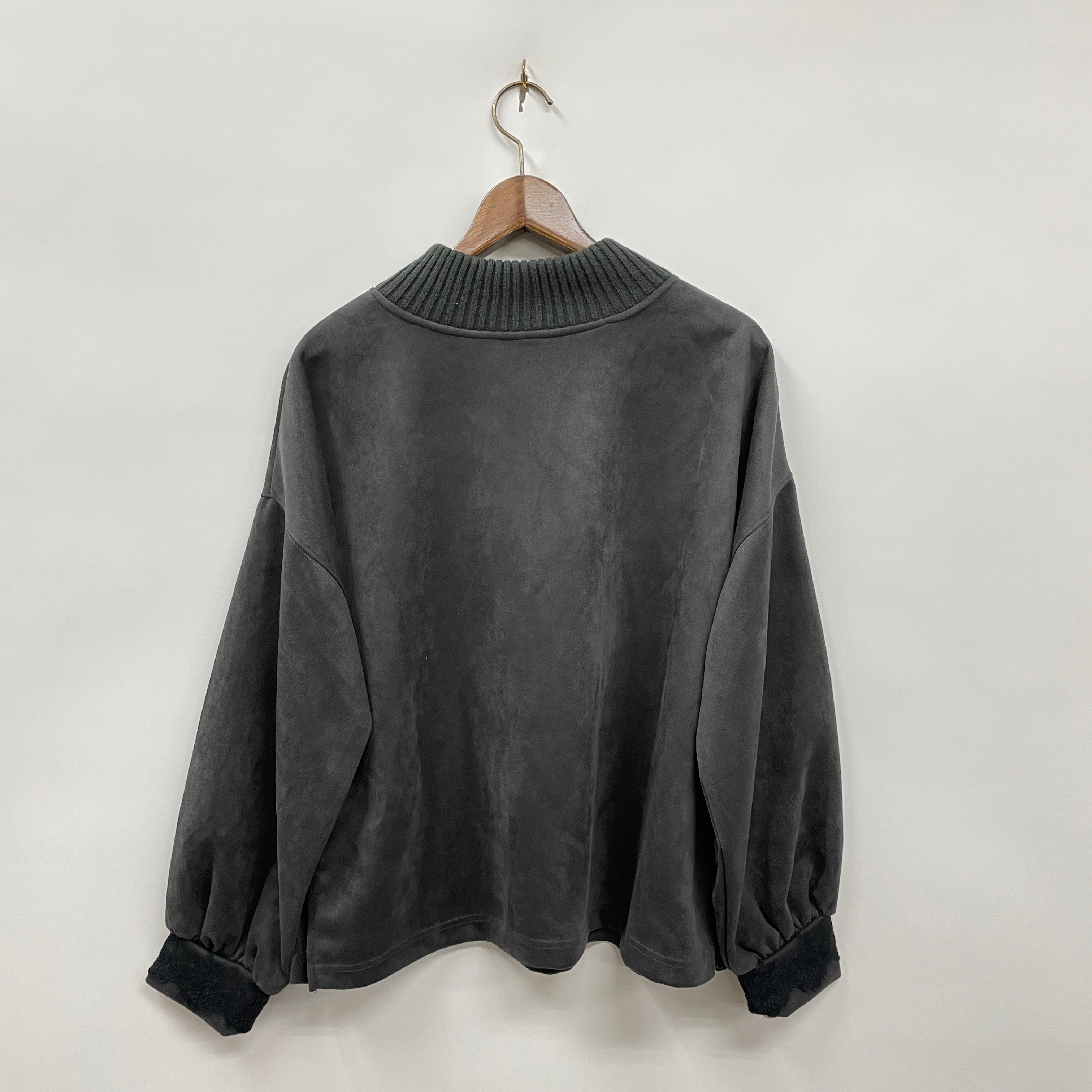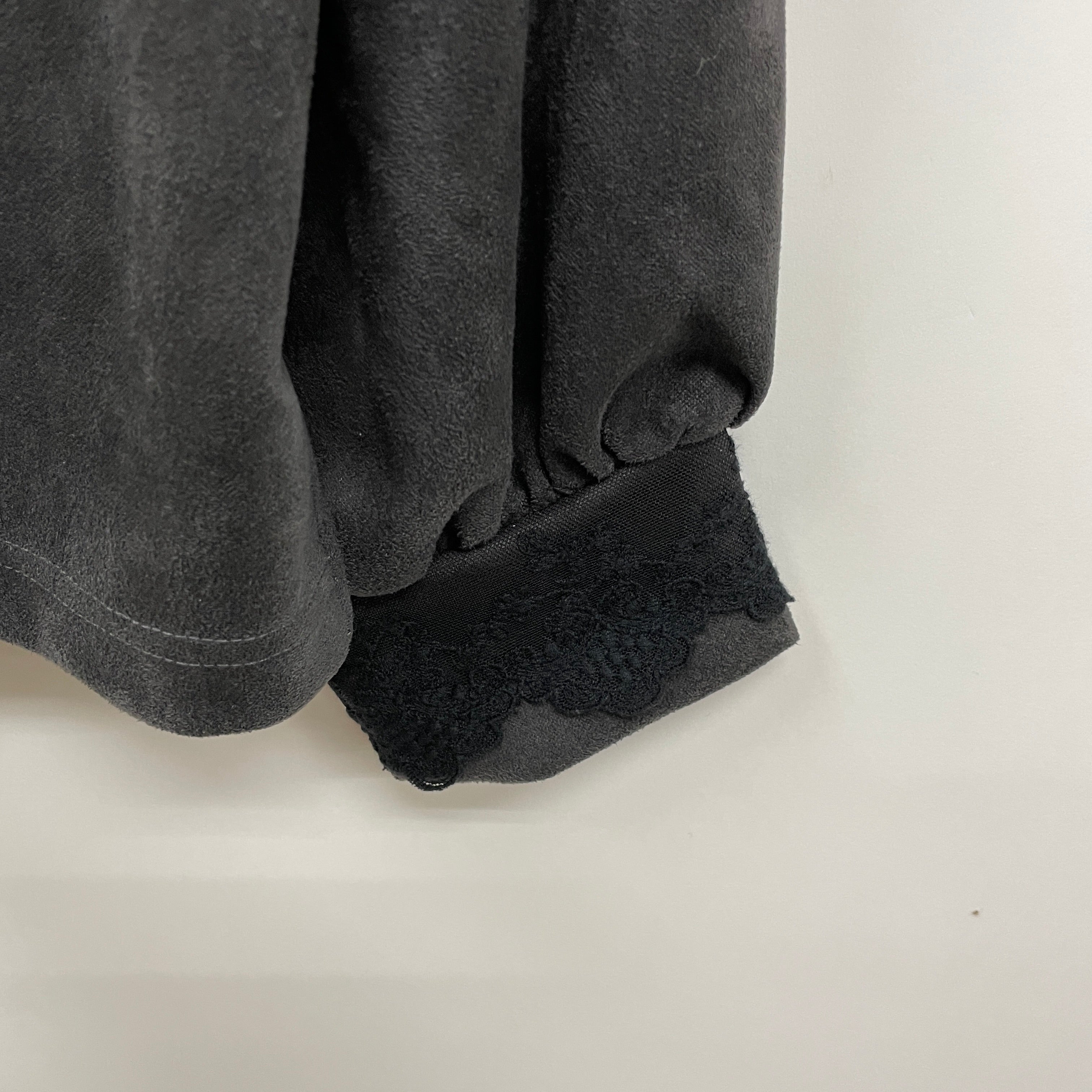 上品なカットスエード素材のプルオーバーです。トレンド感のあるセンタージップデザインを施しカジュアルコーデからエレガントコーデまで幅広くお使いいただけます。ゆったりとしたサイズ感のためハイネックインナーを合わせても◎、アウトスタイルがおすすめです。さりげなくカフスにあしらったレースがポイントです。