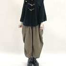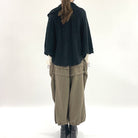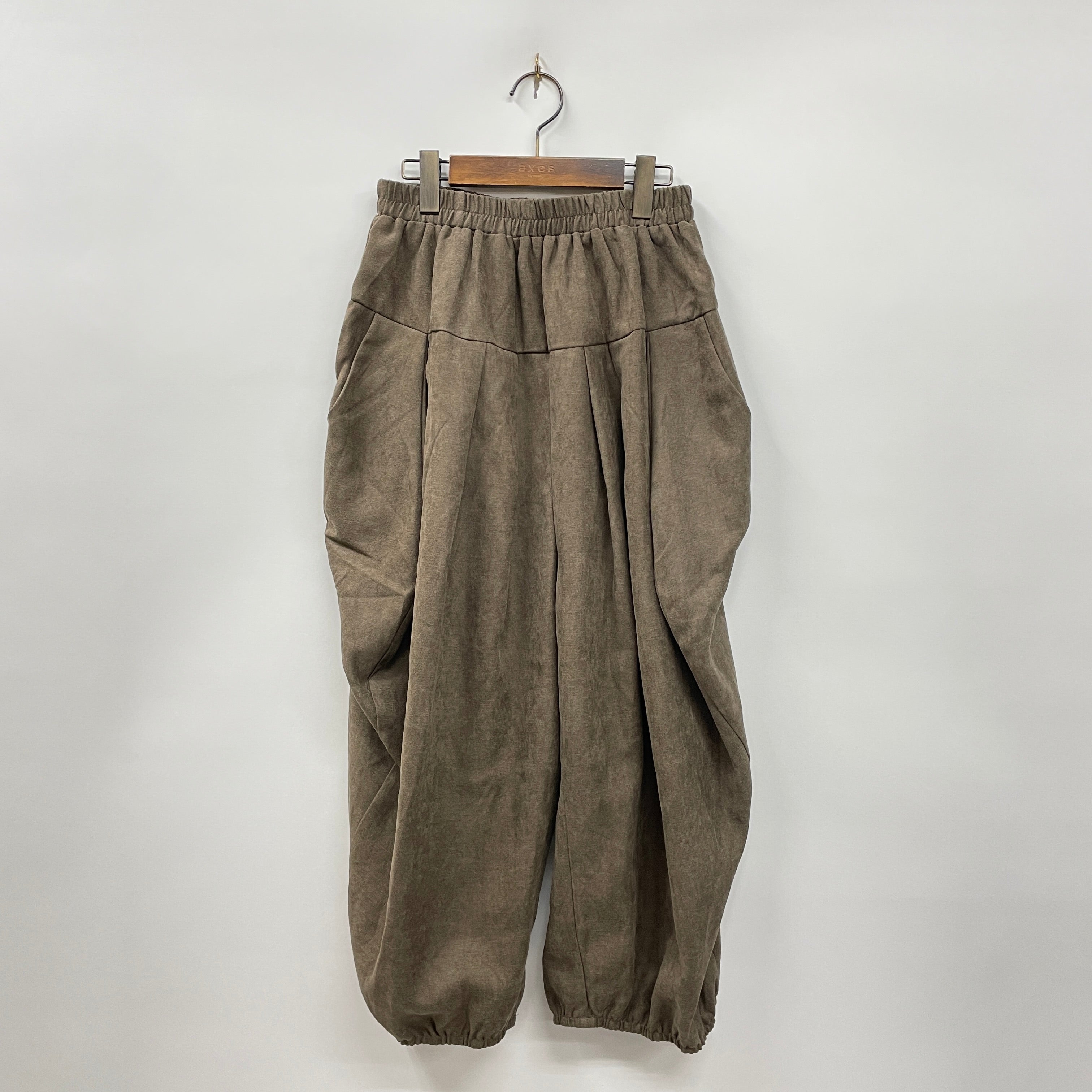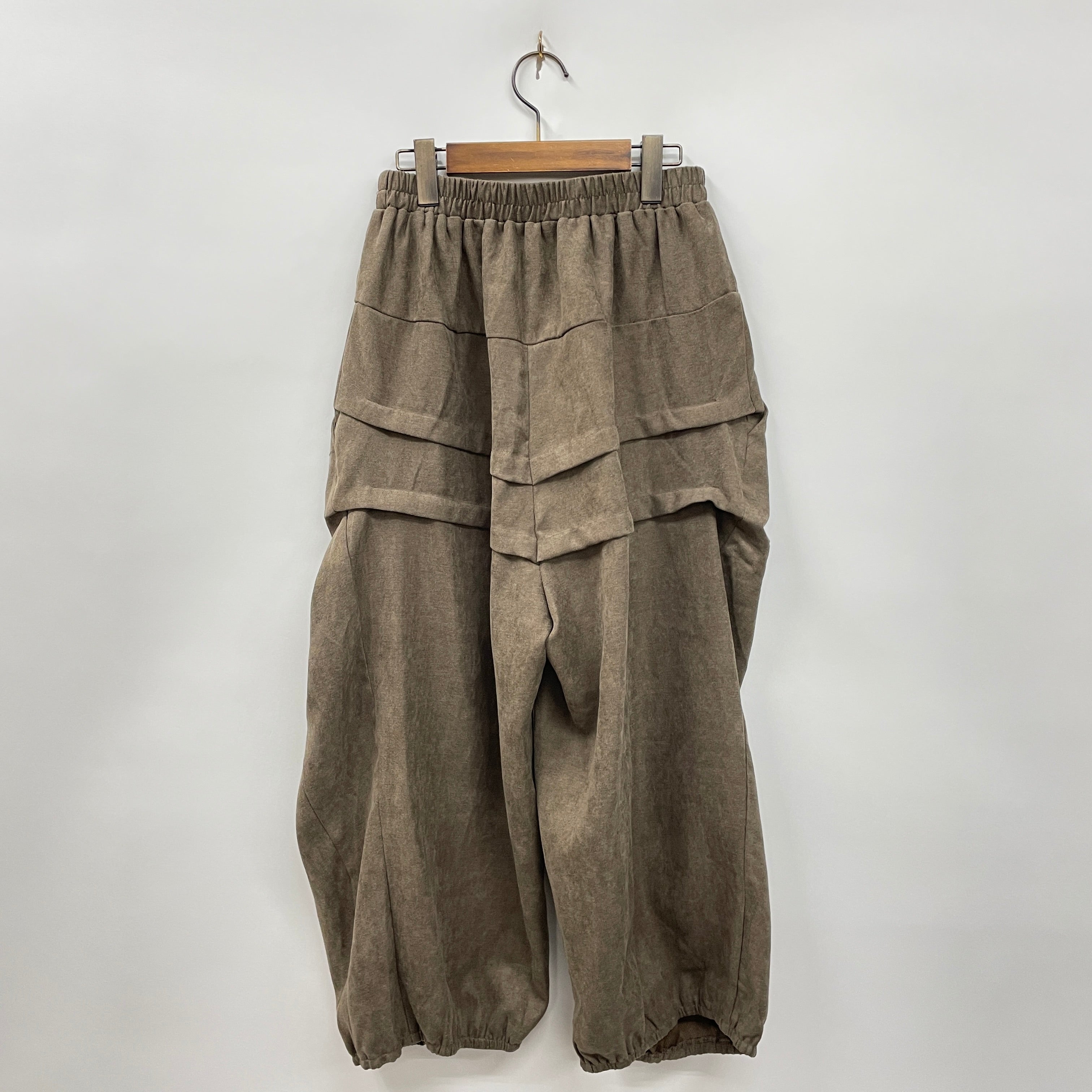 立体的なシルエットが目を引く、タック入りの変形ビッグパンツ。