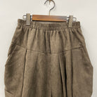ウエストから裾にかけて入った大胆なタックが特徴。
