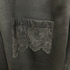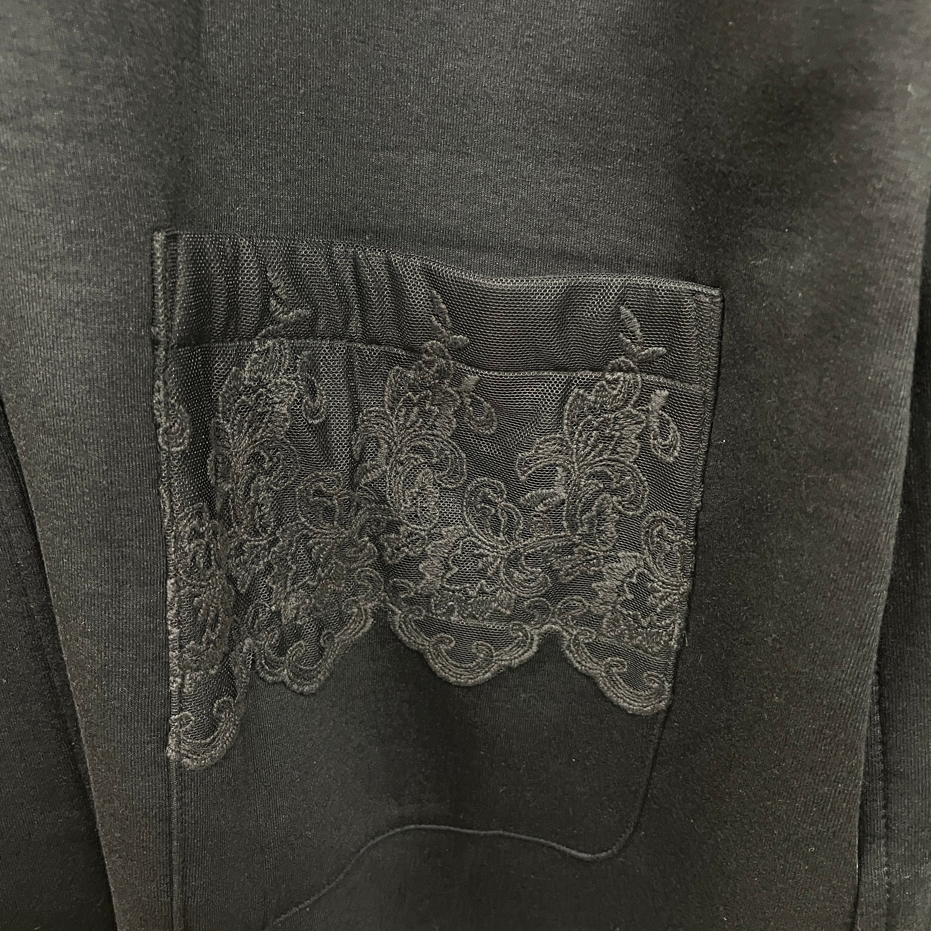 深さがありスマートフォンなどもすっぽり入る、利便性の高いポケットには、華やかなレース生地を重ねてフェミニンさをプラス。