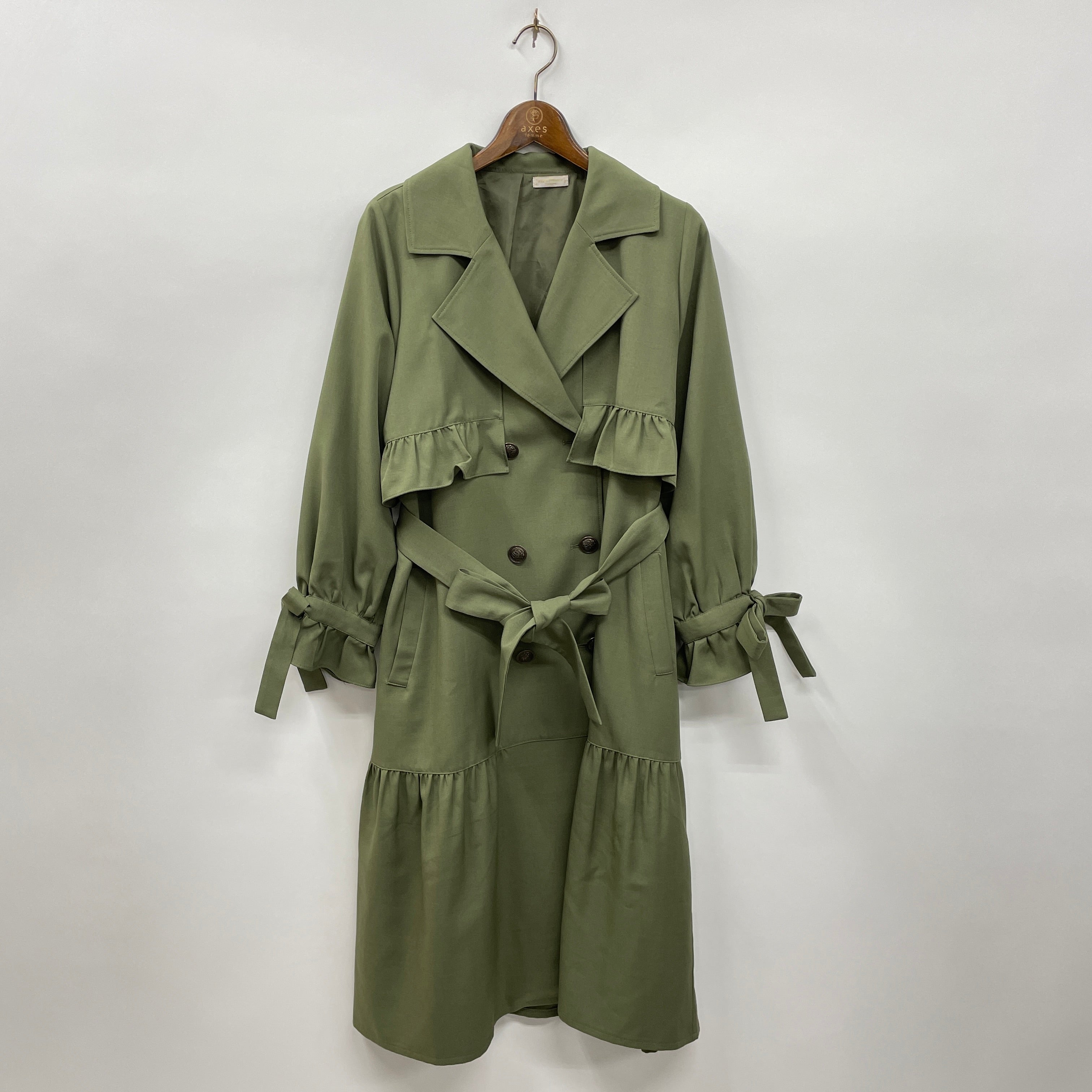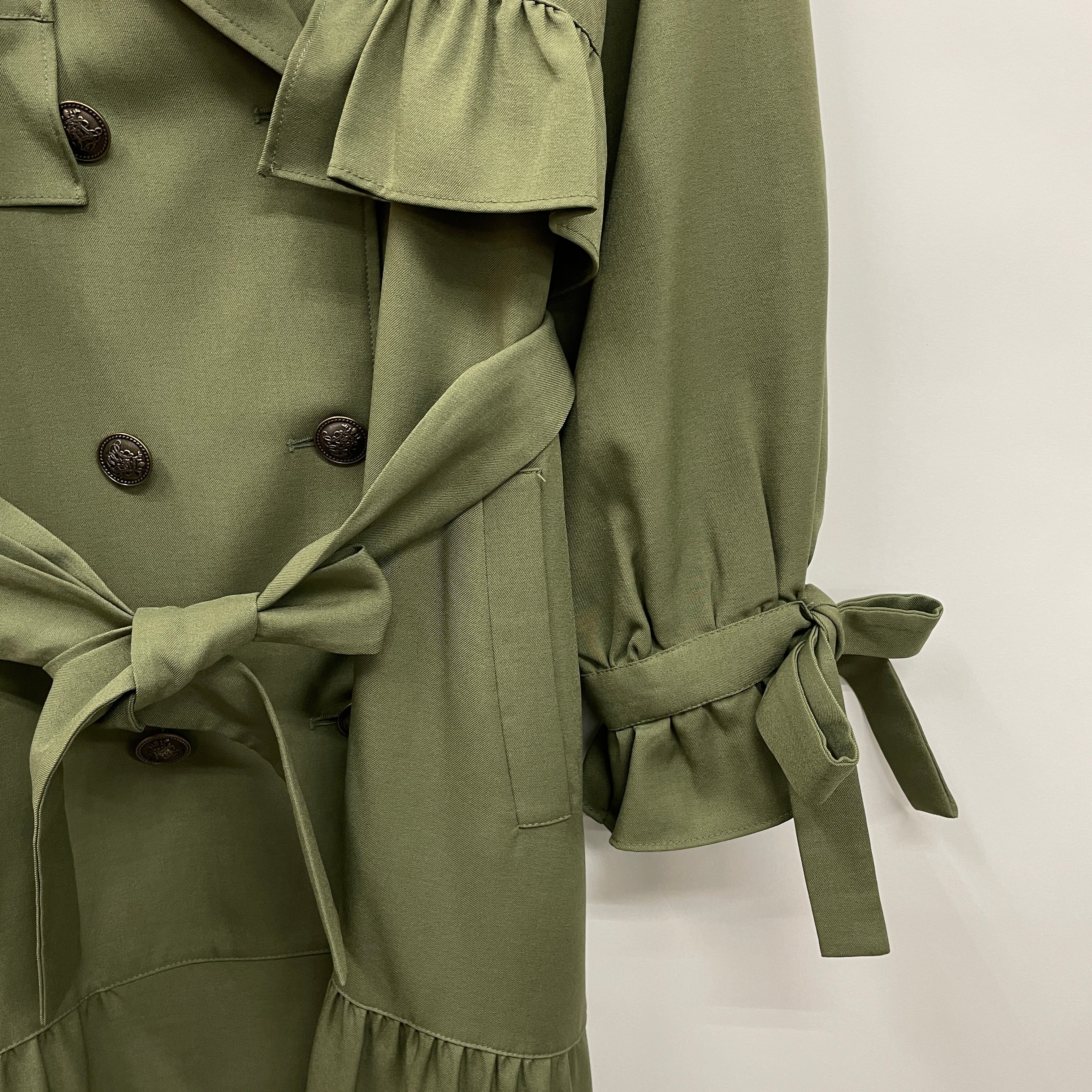 フリルデザインが新鮮なトレンチコートはガーリースタイルはもちろん、カジュアルなスタイルにプラスしても◎!