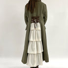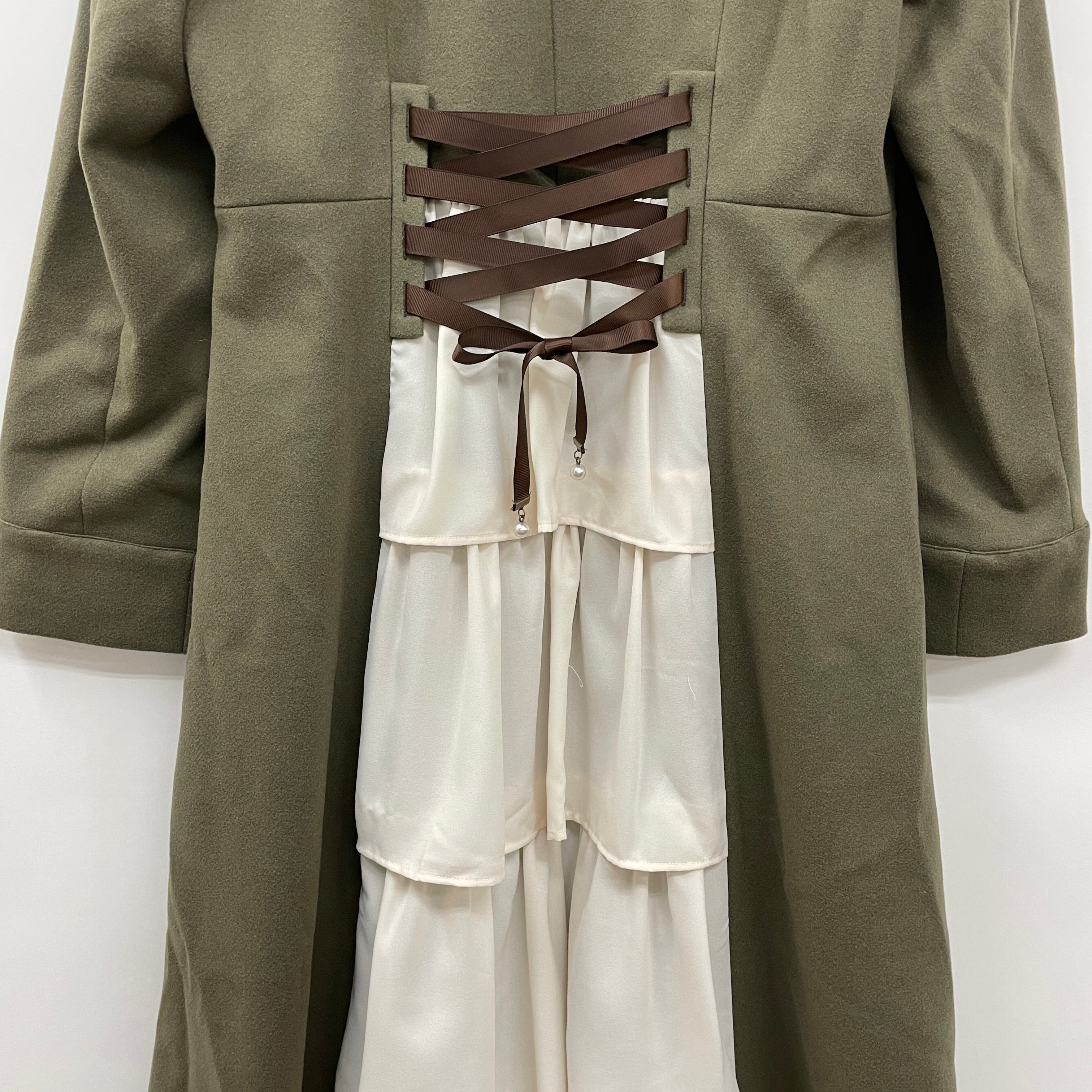 バックスタイルはレースアップでシルエットの調節ができ、重なったフリルがクラシカルな印象に仕上がります。
