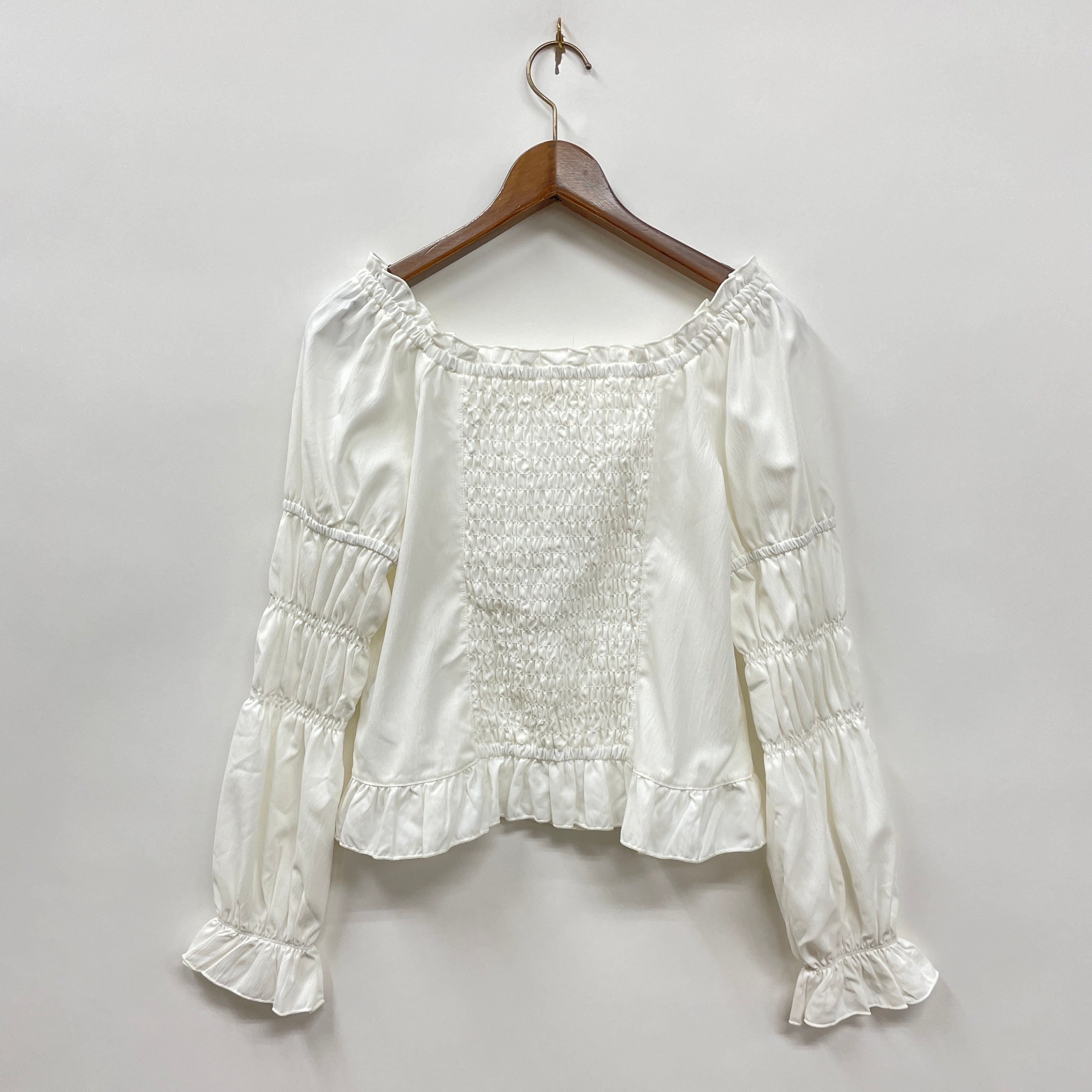 表面のシワ感や袖のパフスリーブが優美なデザイン。