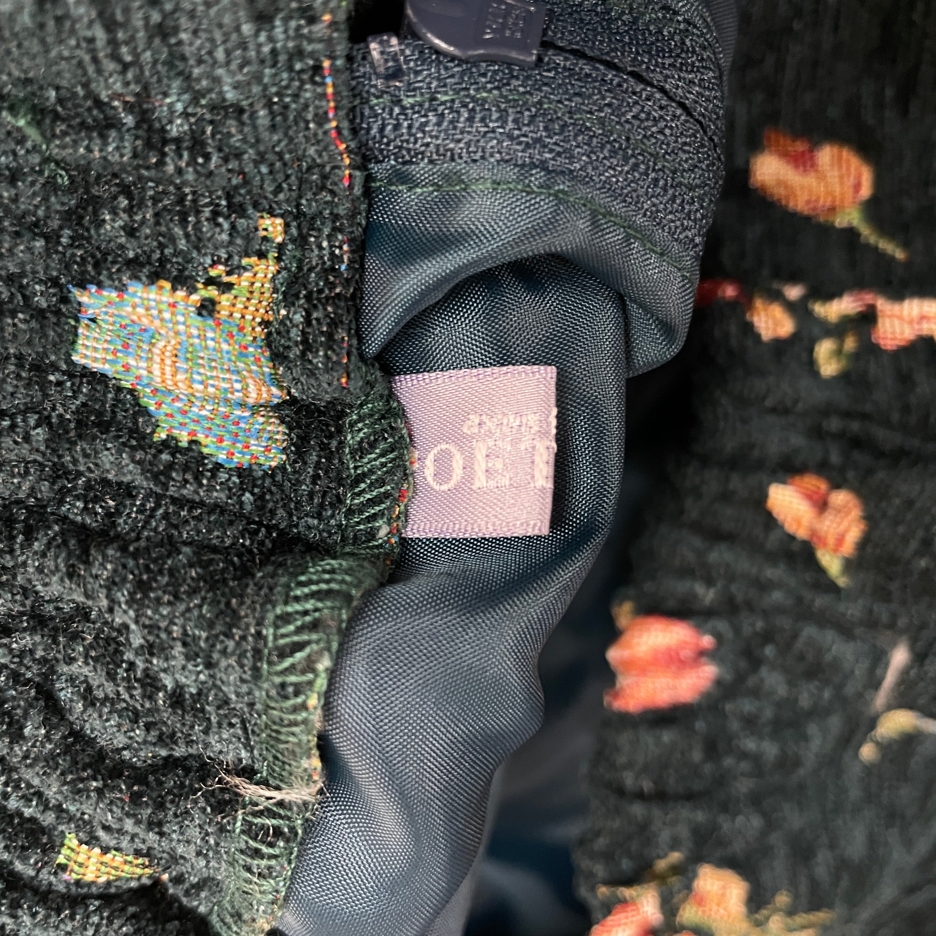 コーデュロイにフラワー刺繍があしらわれた価値観のある1枚。