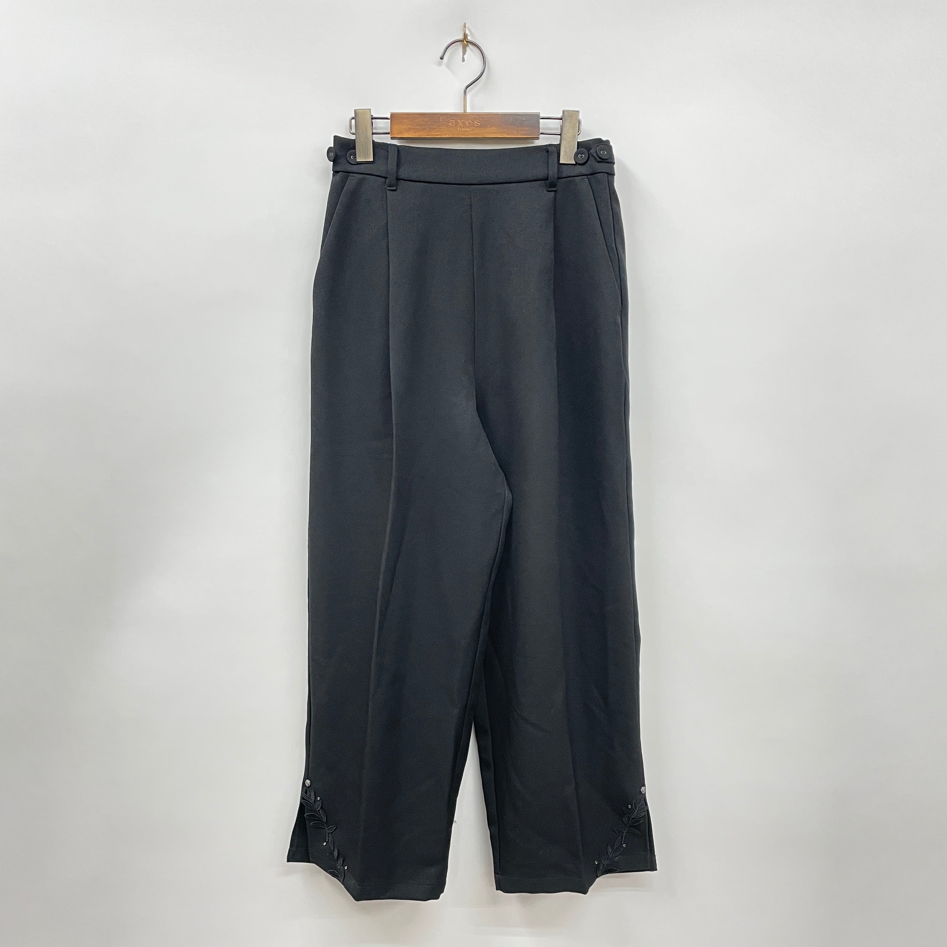 レースとラインストーンの裾デザインがポイントのストレートパンツです。