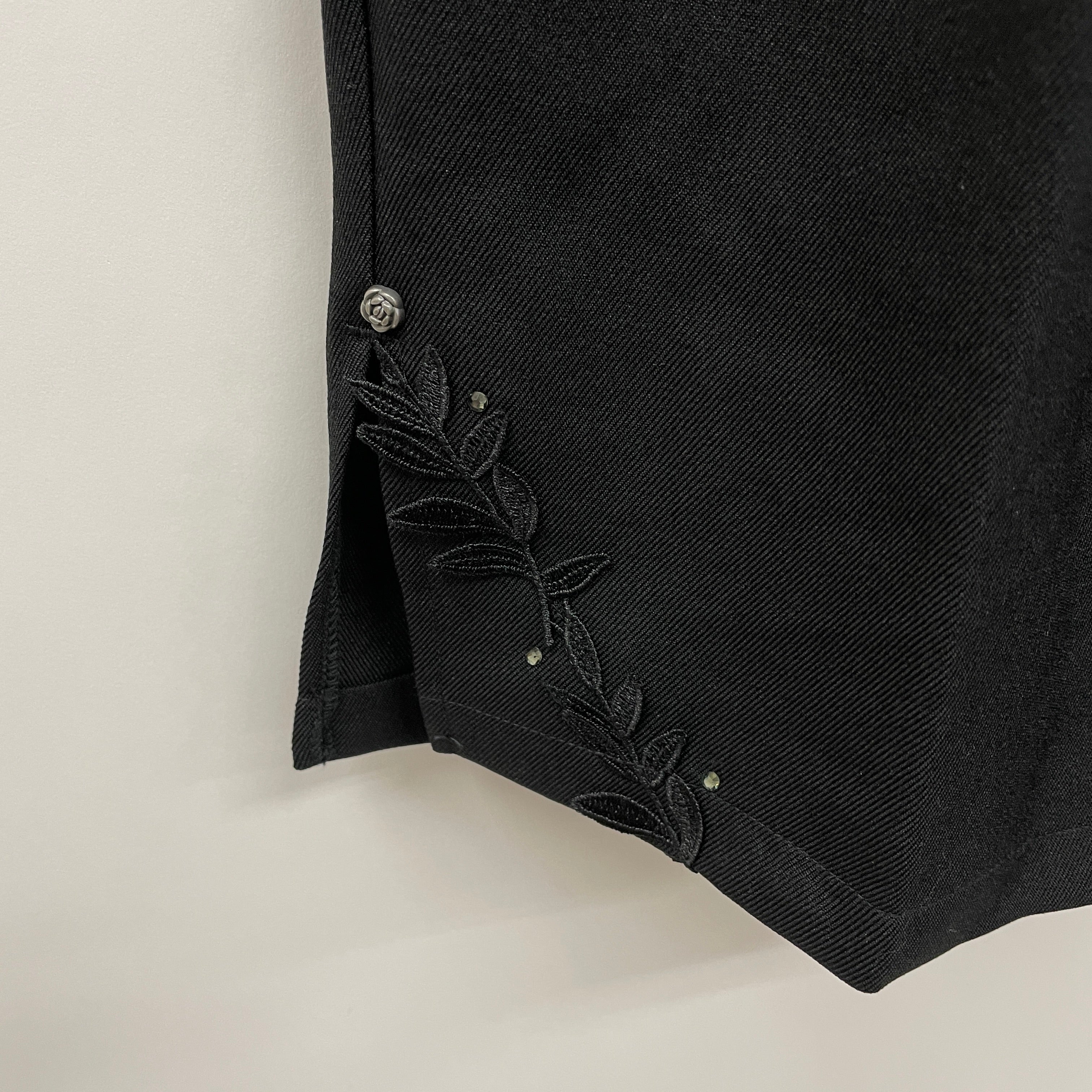 サイドスリットの入った裾には、ワンポイントでバラのリベットを施してフェミニンさをプラス。