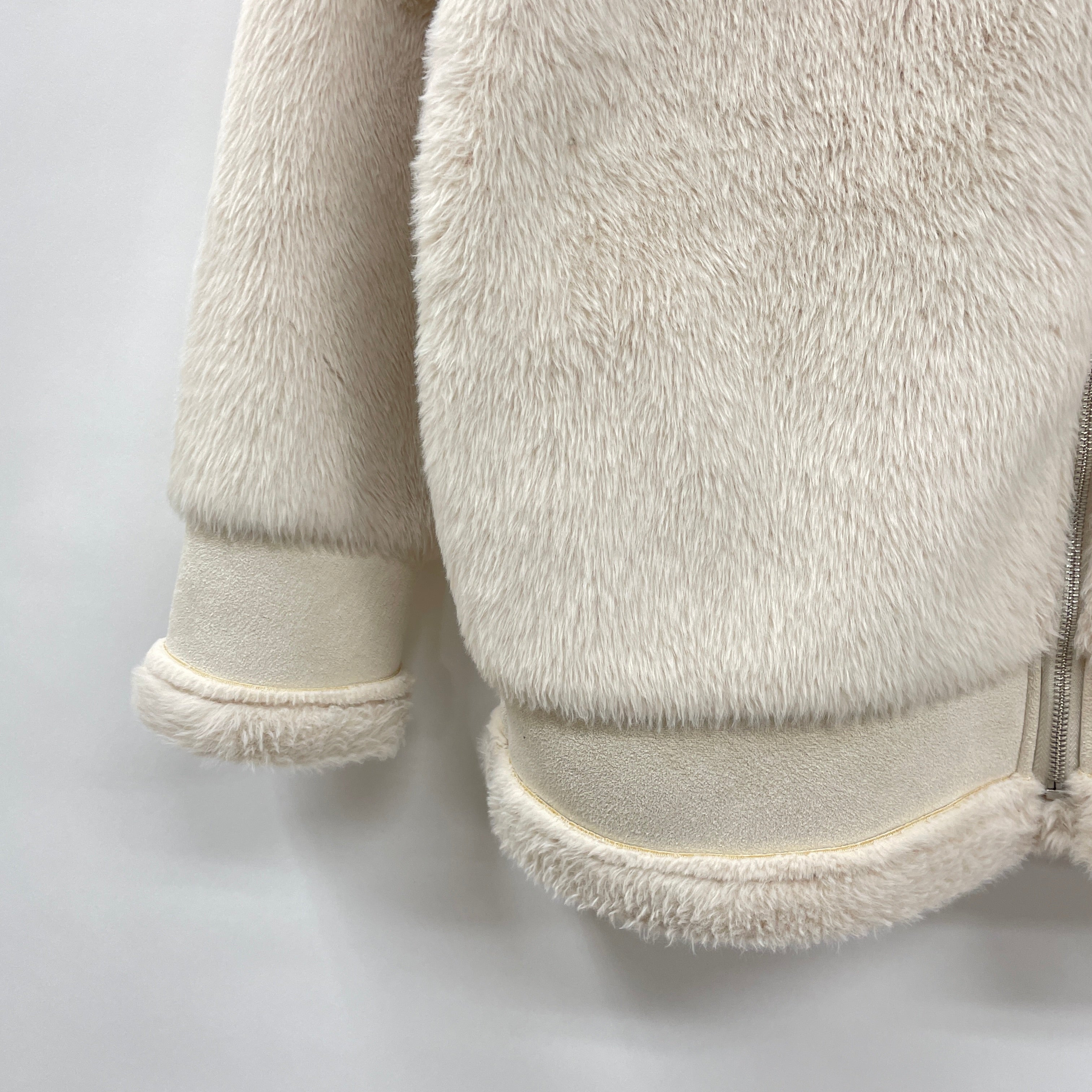 ファーデザインが今年らしいショートコート。ネック部分のベルトデザインが遊び心あるデザインポイントに。保温性が高く冬におすすめのコートです。