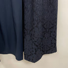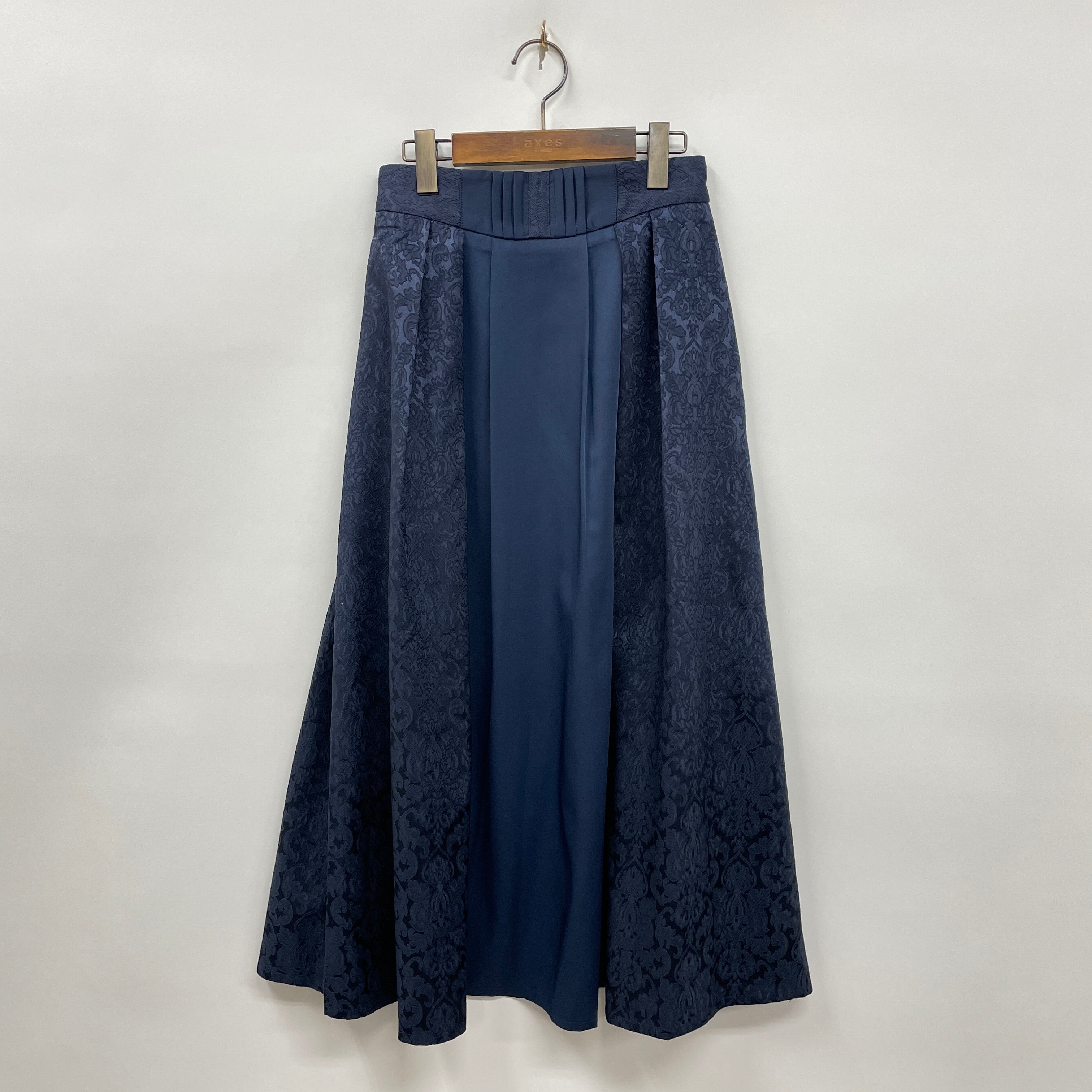 光沢感のあるジャカード生地で切り替え、サイドタックのシルエットが目を惹きます。