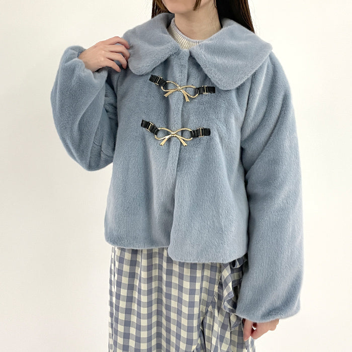 リボン金具ファーコート
