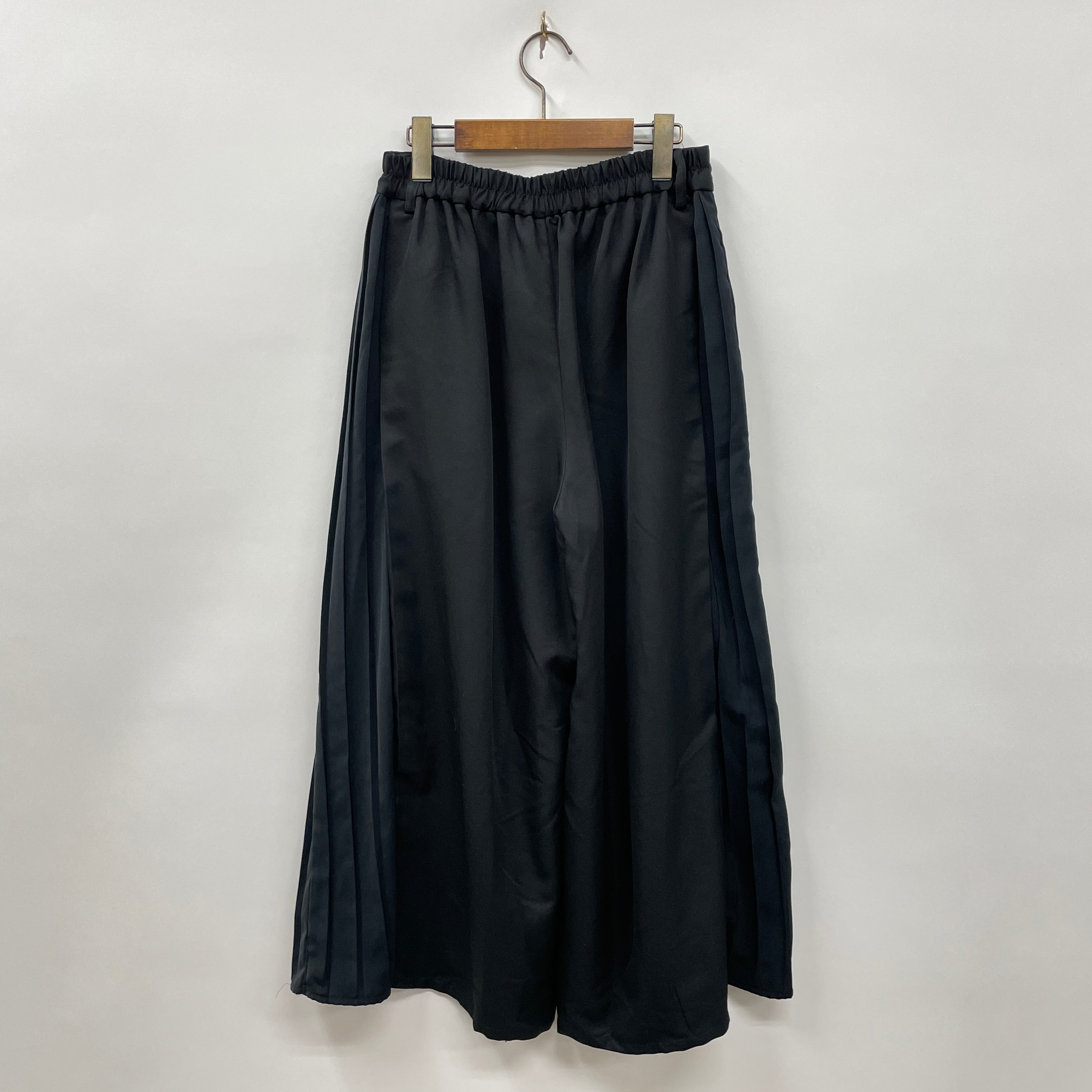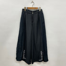 裾にアンティーク調な刺繍の入ったワイドパンツです。身頃の生地と、落ち感のある脇プリーツとが切り替わっていて、素材感の違いも楽しめるアイテムです。