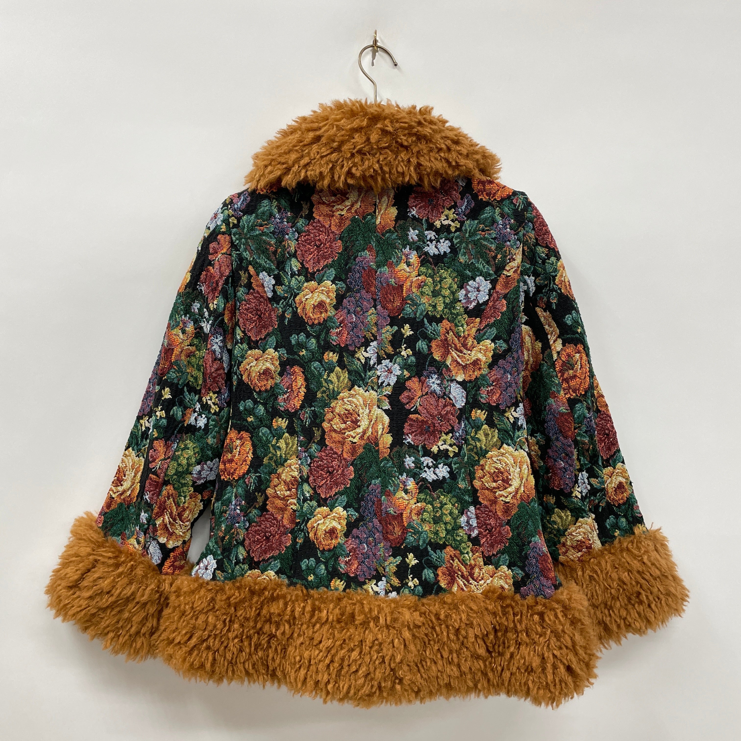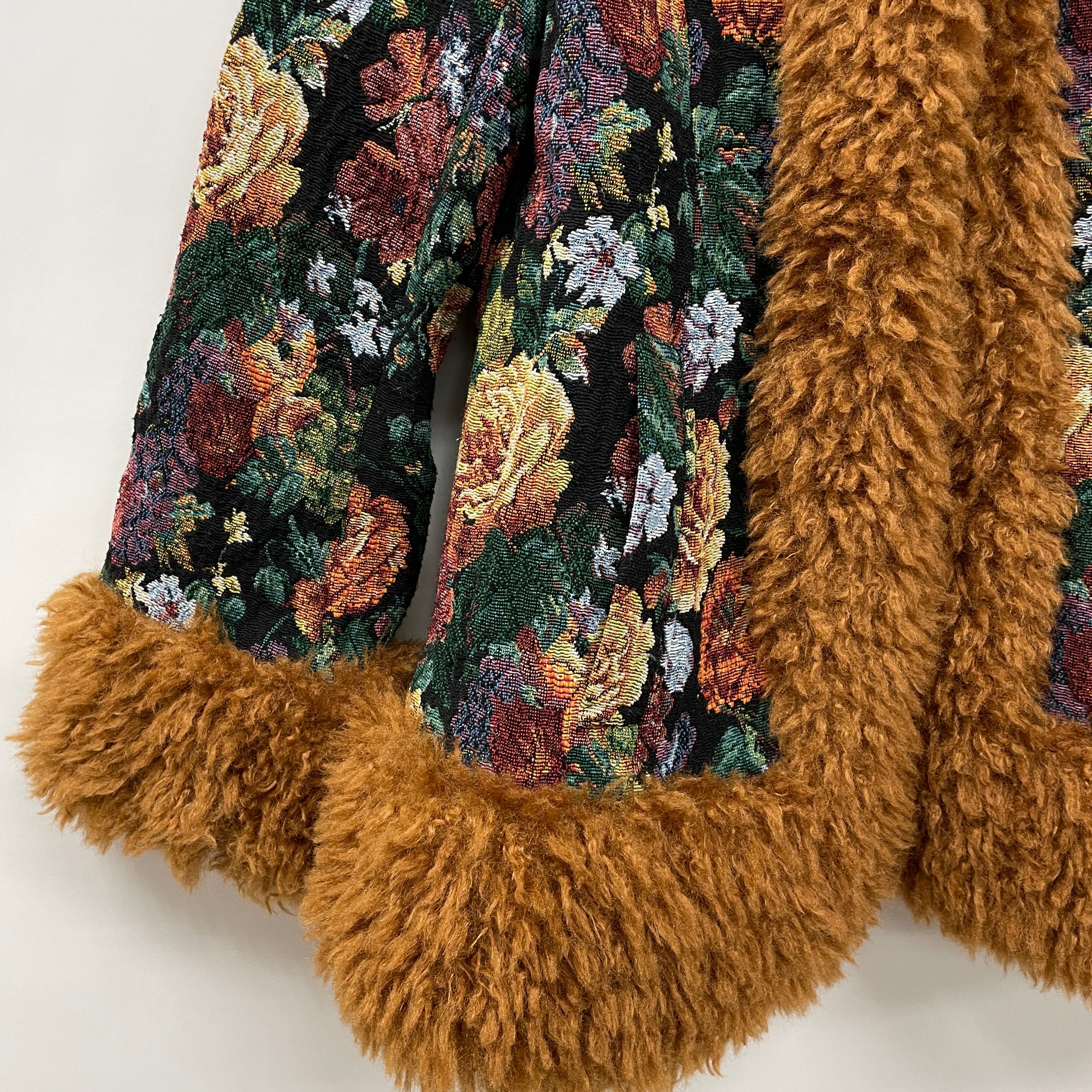 華やかで上品な大柄のゴブランジャガードのコートです。トリミングに使用したチベット風フェイクファーの贅沢な仕様もポイントです。ゴブラン花柄とファー使いが存在感のあるスタイルを演出します。