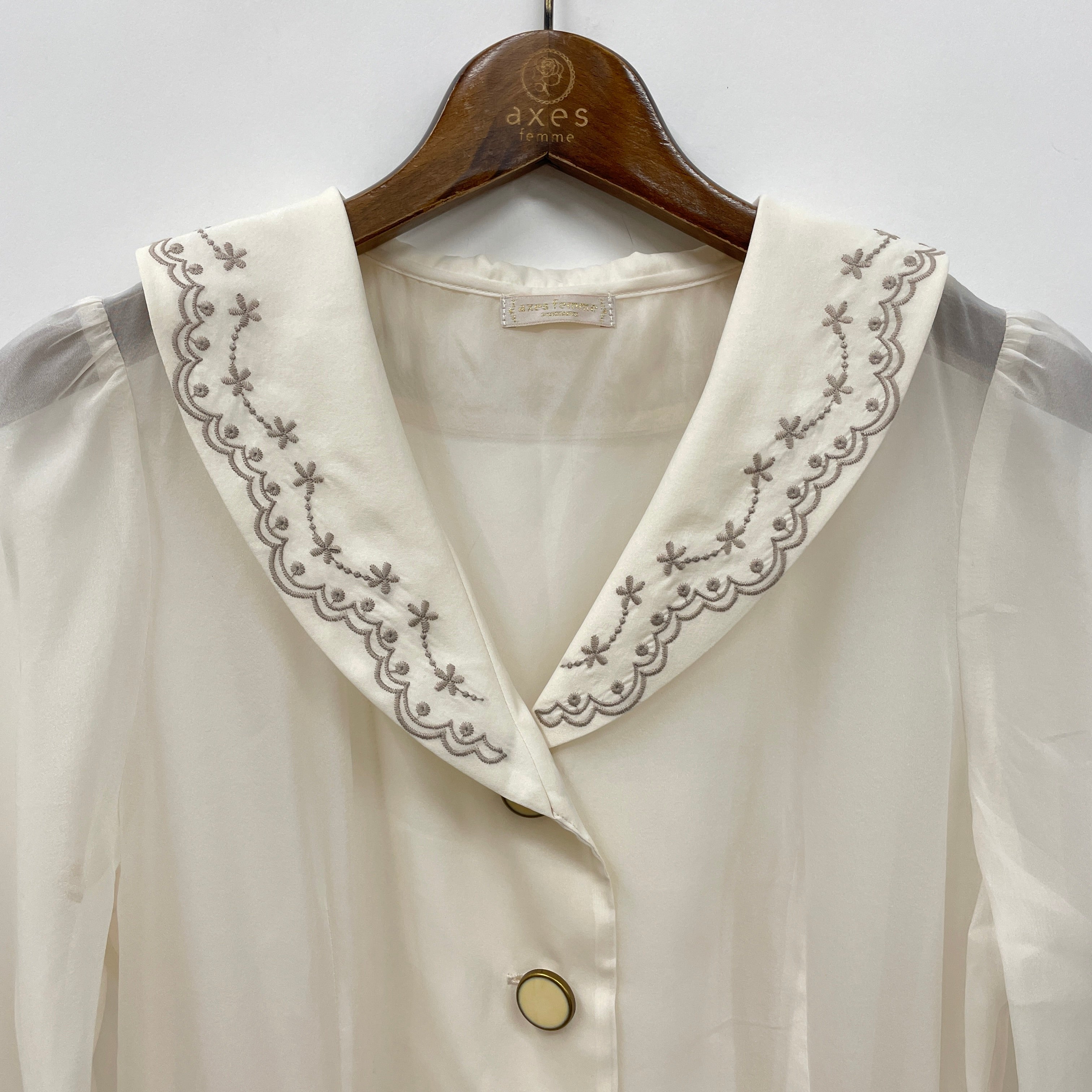 刺繍襟シアーロングコート