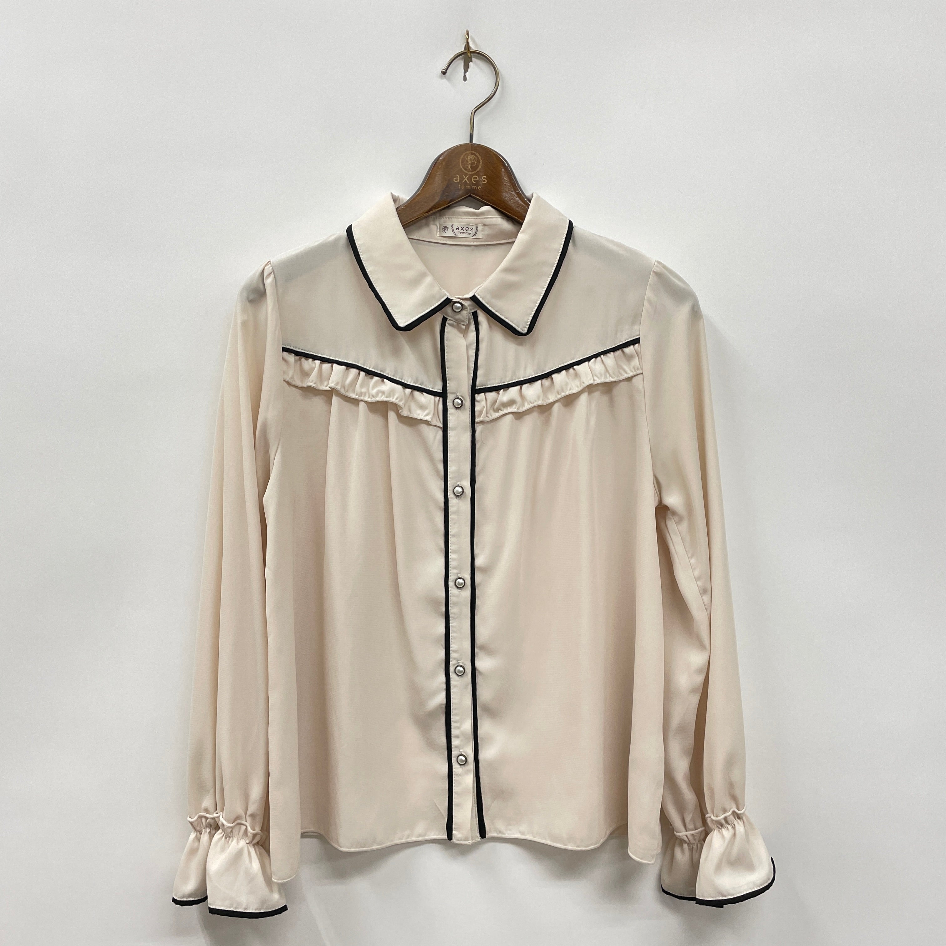 パイピングバイカラーブラウス