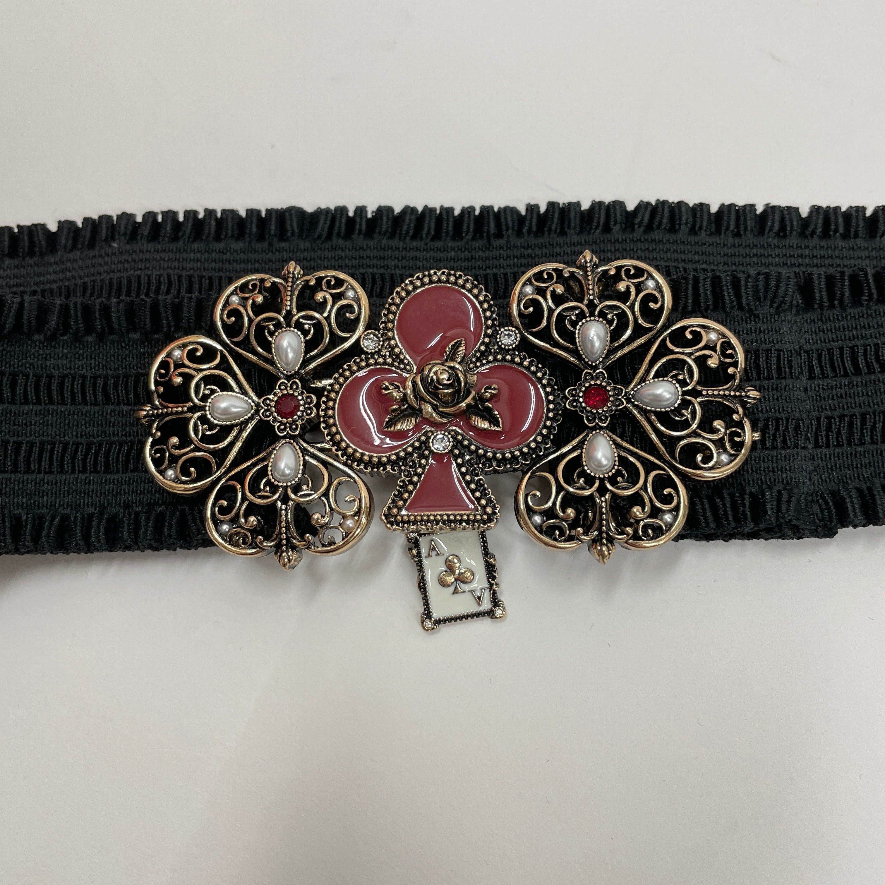 バックルにトランプのクローバーをあしらったゴムベルトです。