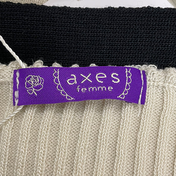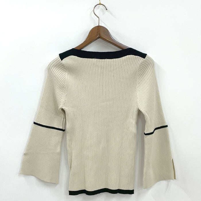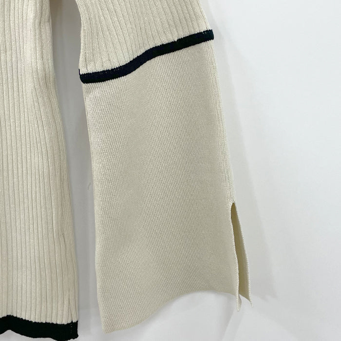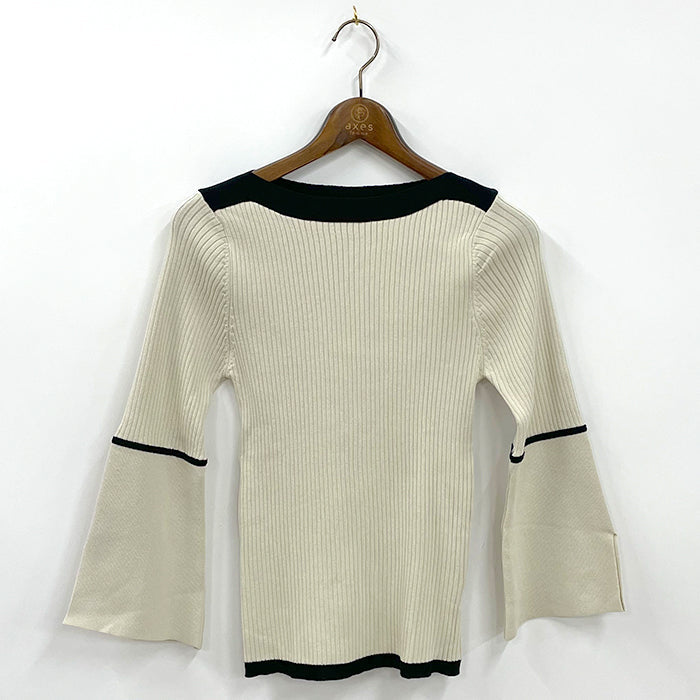 ポイント的に取り入れた襟ぐり&袖の配色が効いたモードなデザイン。