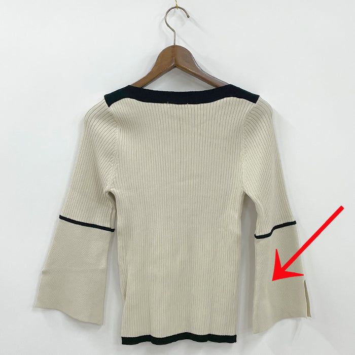 すっきりとしたボートネックとスリットのある袖が洗練された雰囲気を演出します。
