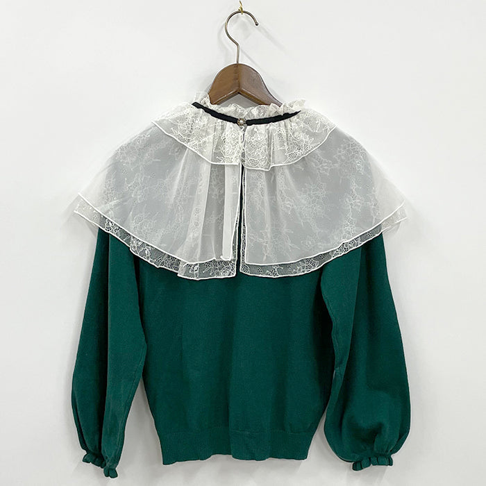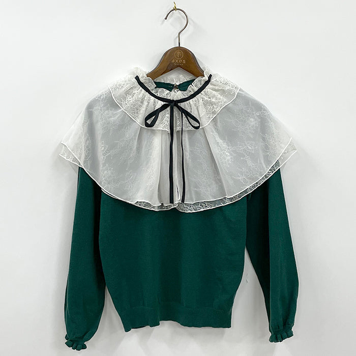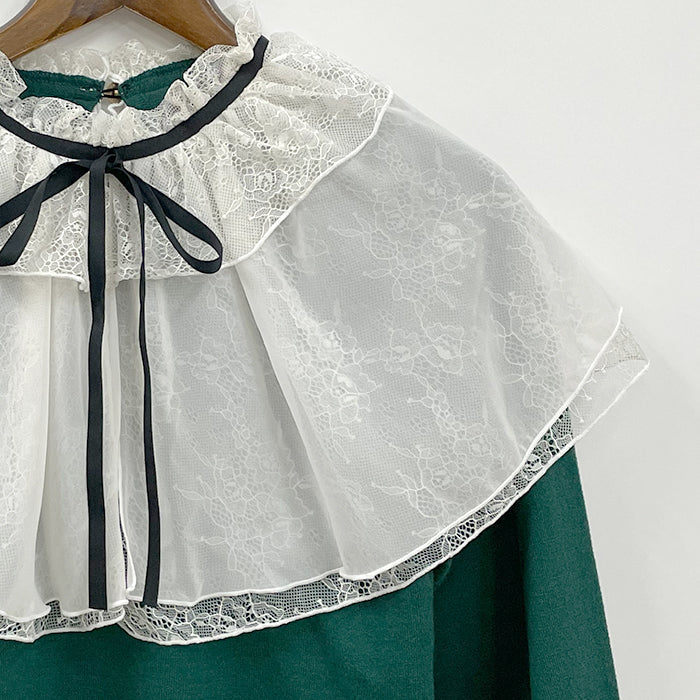 シフォン生地のケープにはレース生地が重なり、華やかな印象に。