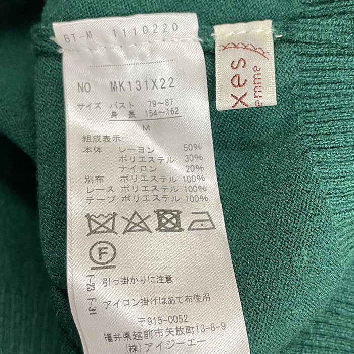 | サイズ | 着丈 | バスト | 肩幅 | 袖丈 | 袖口 |