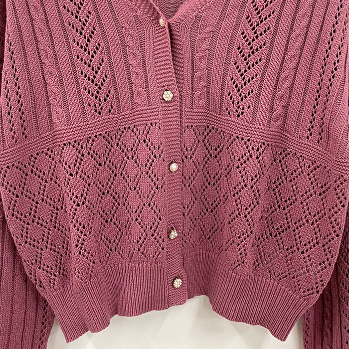 身頃は、ストライプ見えからダイヤ柄に切り替え、フェミニン感をプラス。