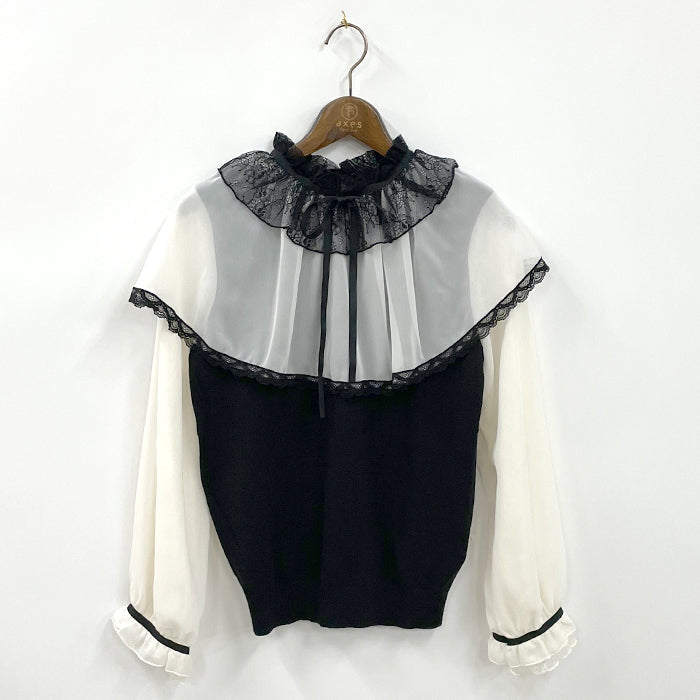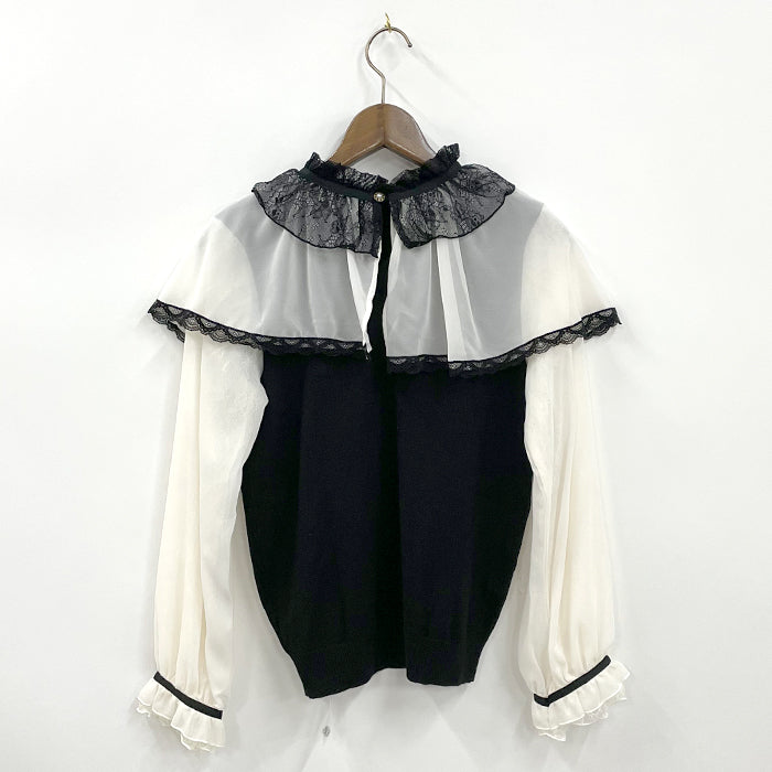 繊細なレースとシフォンが広がる、ケープデザインのニットプルオーバーです。
