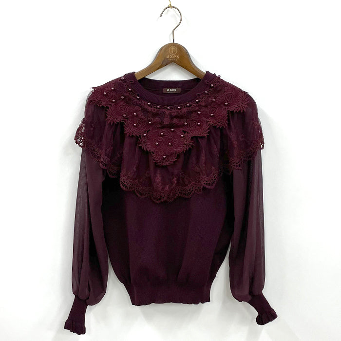 重ねレースには立体レースにパールなど、たっぷりのデザインが◎レースとニット生地は同色で、たっぷりのデザインながらシンプルに着用いただけるアイテム。お袖のきゅっとしたデザインが可愛らしさ◎