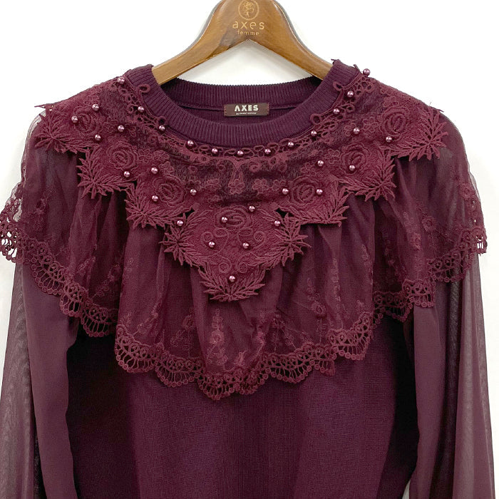 胸元に広がるレースが主役!重ねレースが上品なプルオーバー。