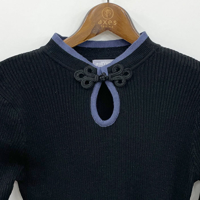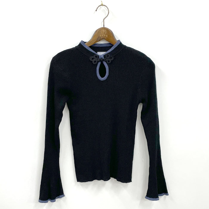 襟元にあしらったチャイナボタンがアクセントになったニットプルオーバーです。