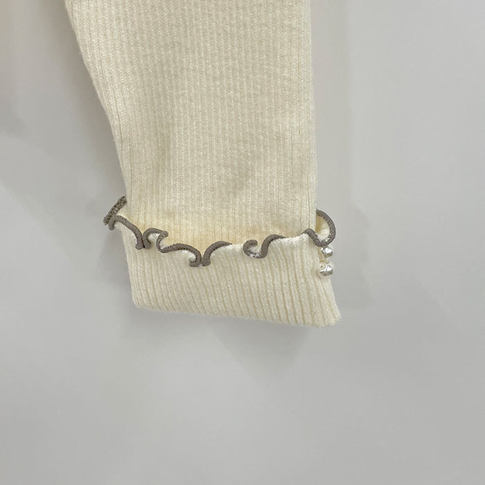 袖は折り返しデザインで、パールをあしらっているのがポイント。