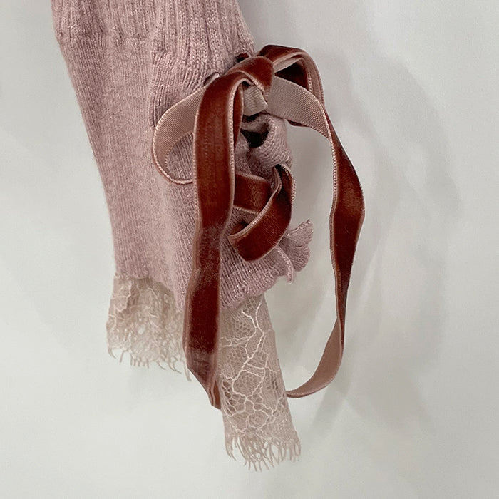 袖口にあしらわれたレースとレースアップデザインがポイントになっています。