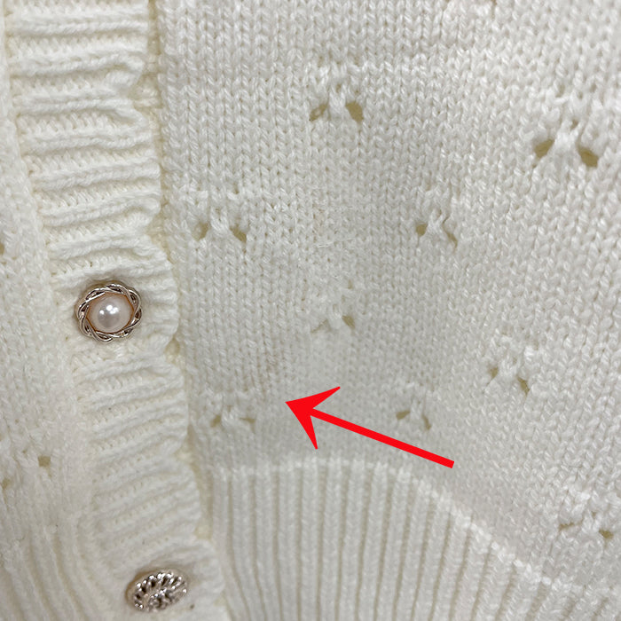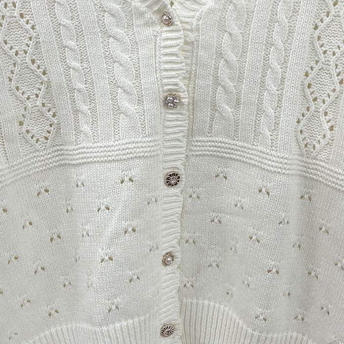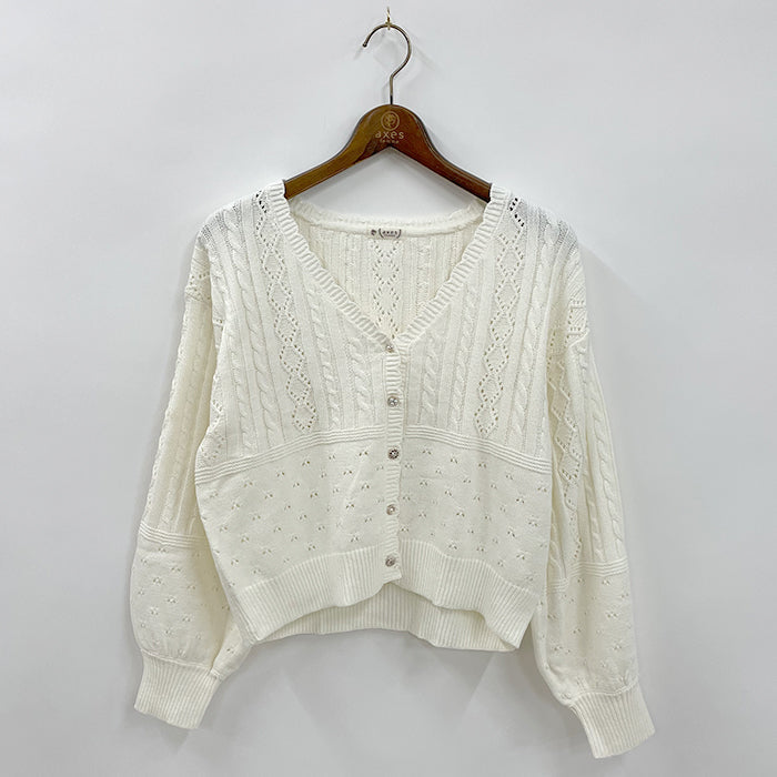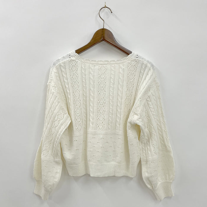 ケーブル柄からドット風の透かし柄に切り替えて、フェミニン感をプラス。