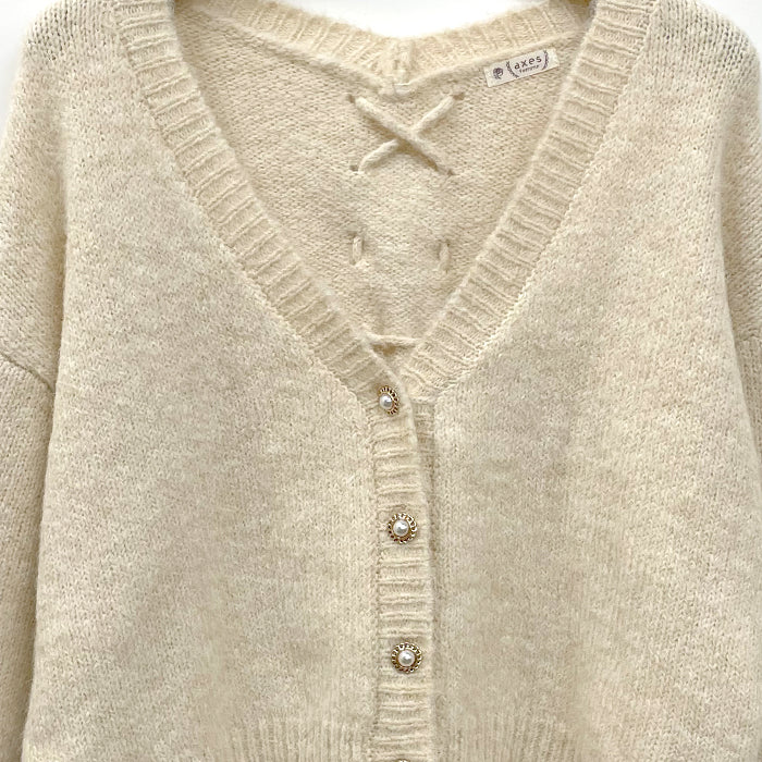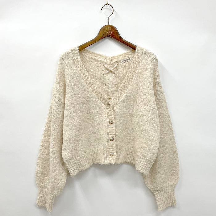 今年らしい毛足が長いふんわりした肌触りのニットカーディガンです。