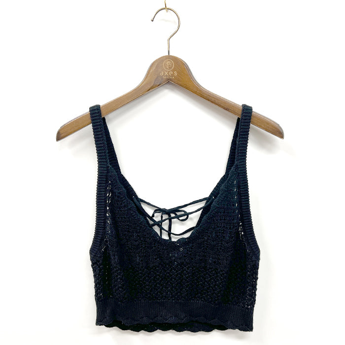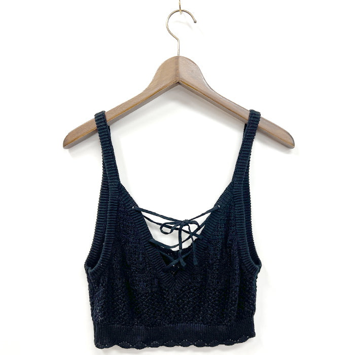透かし編みで仕上げたビスチェタイプのニットベスト。