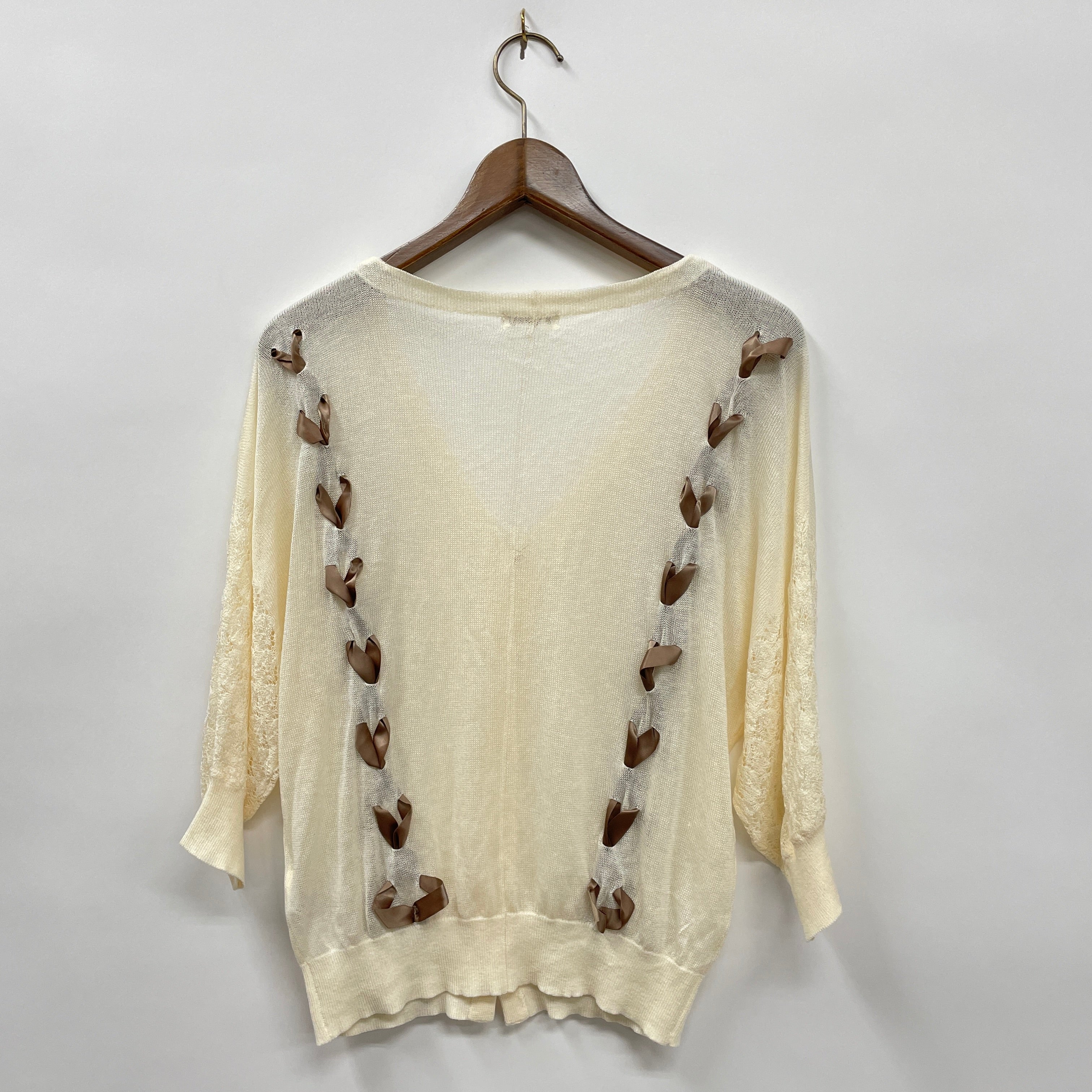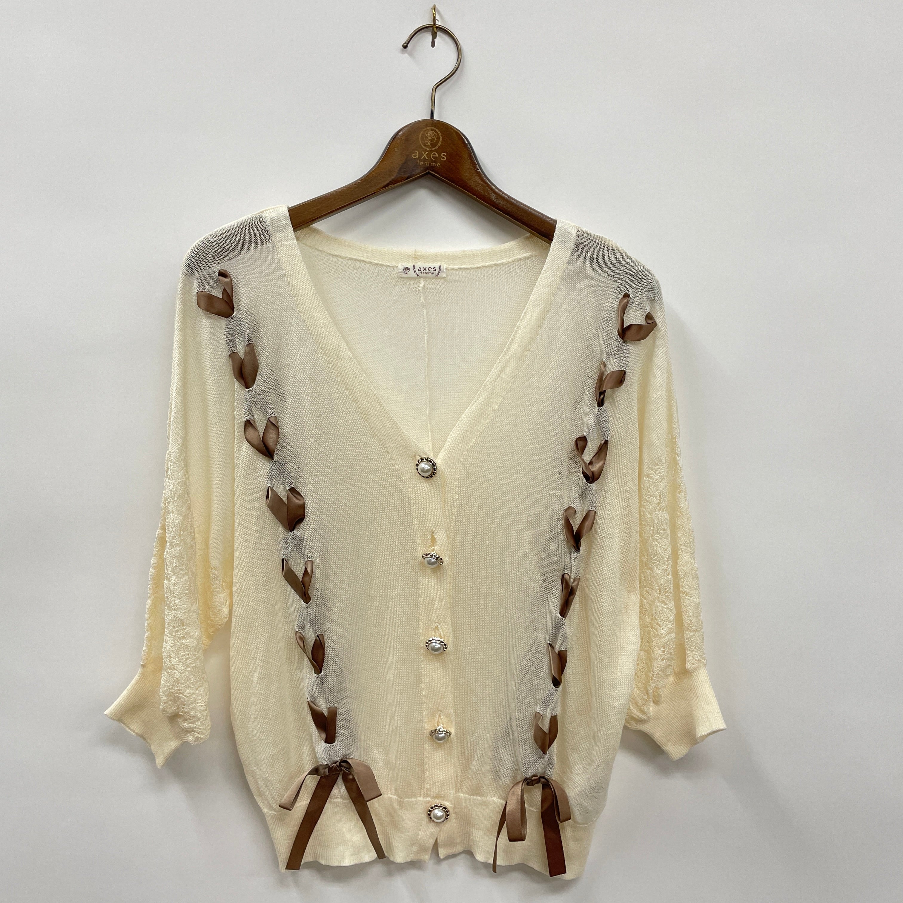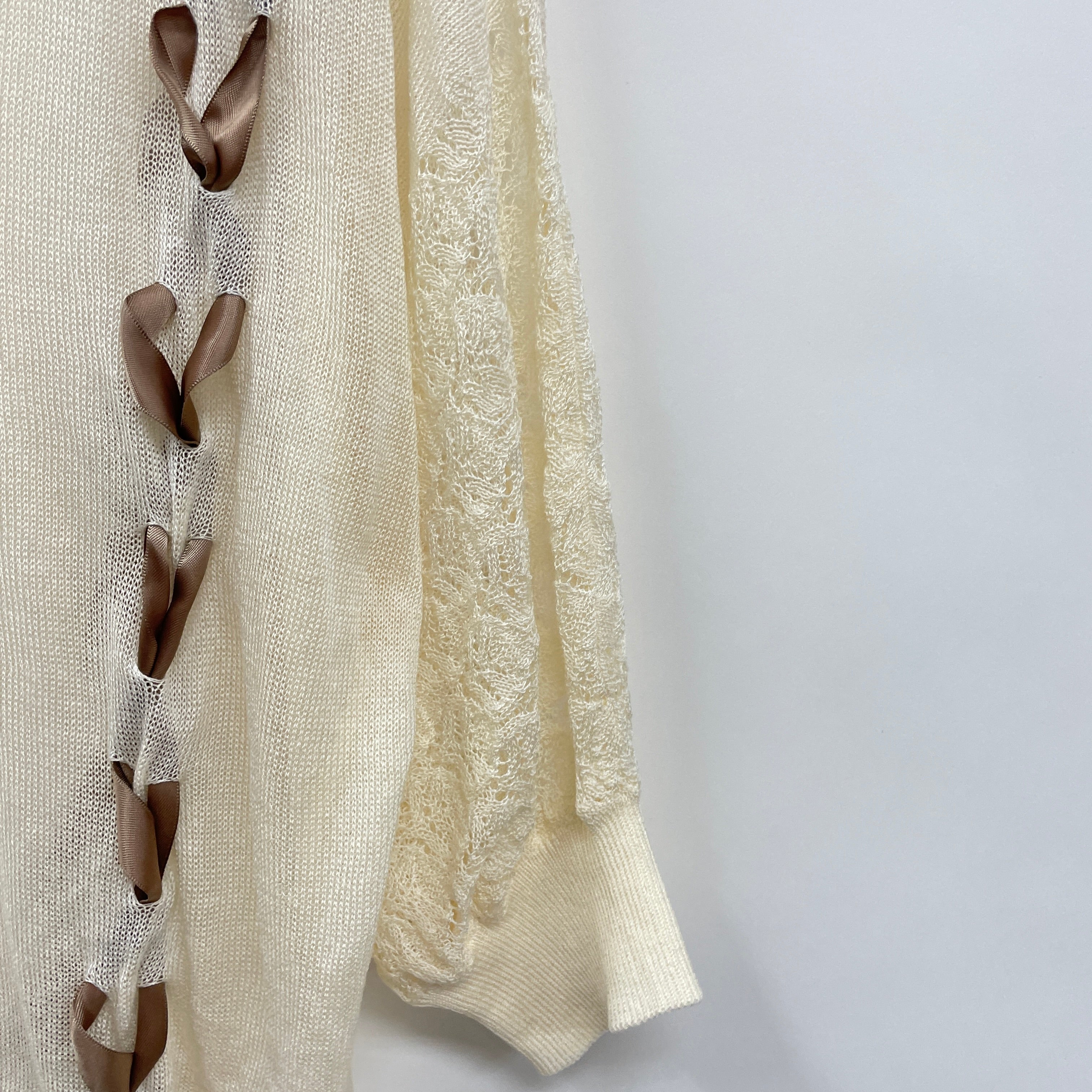 フェミニンなレースアップデザインがポイントのカーディガンです。