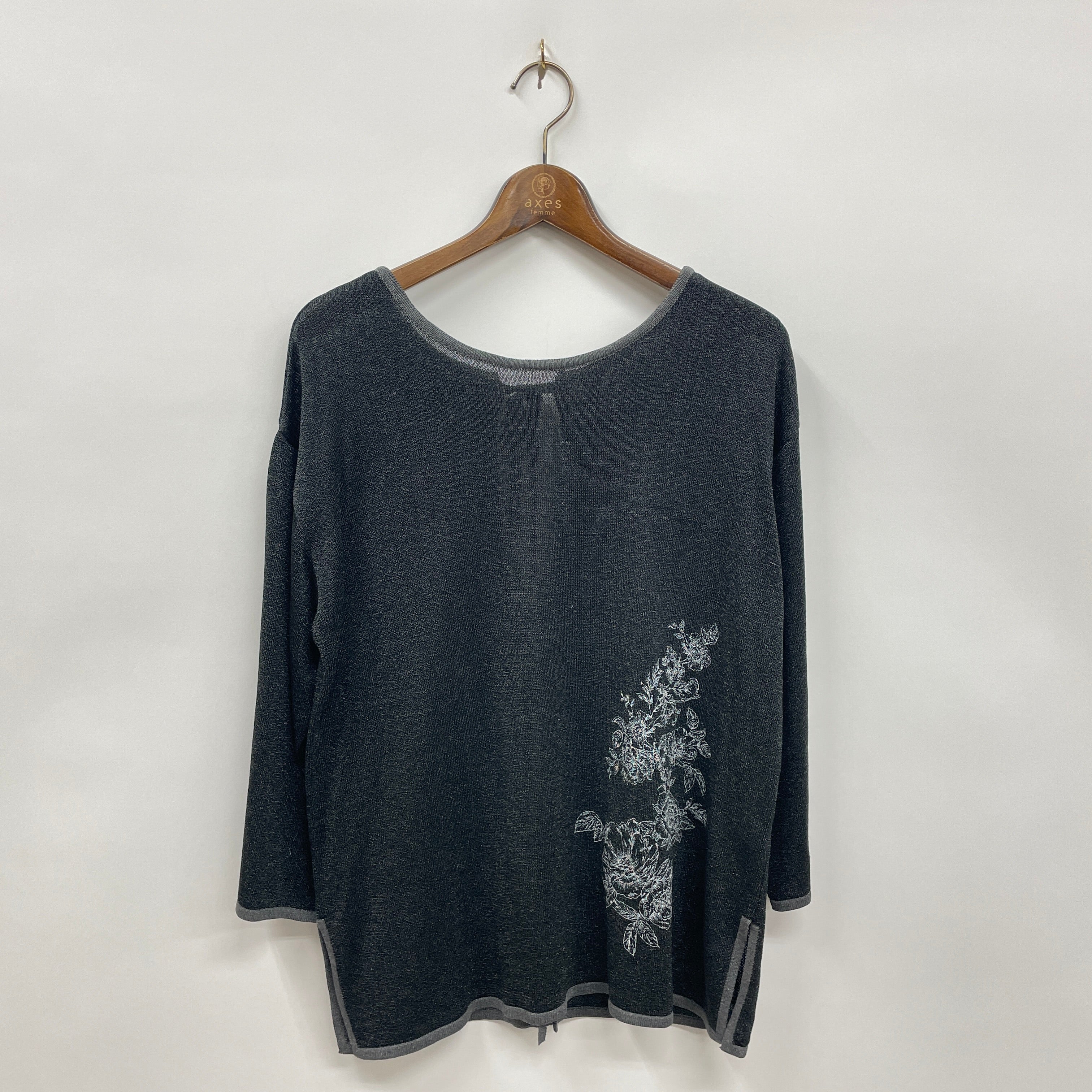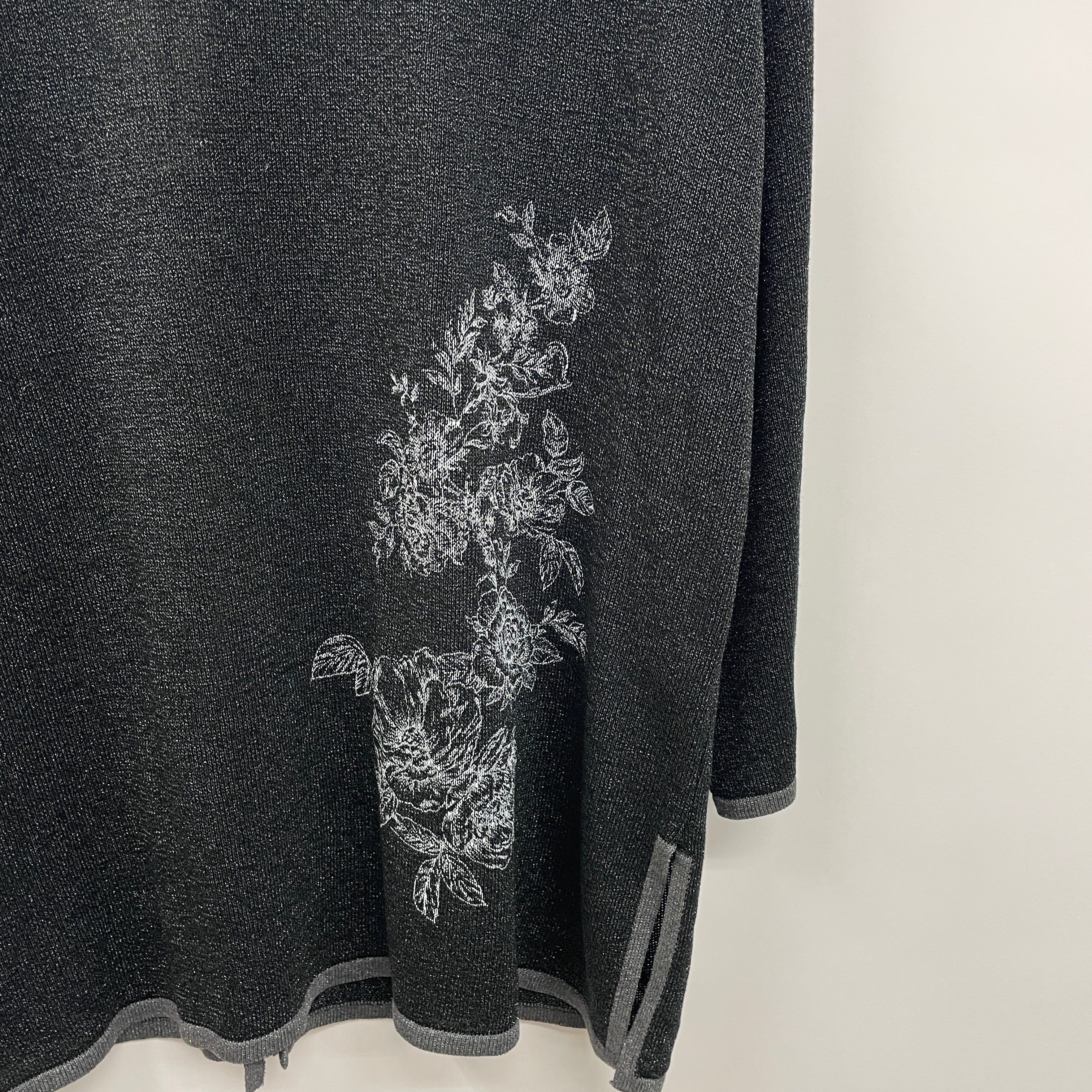 裾には線画タッチのフラワーをプリントしアクセントを加えました。さりげないバイカラーデザインがポイントです。