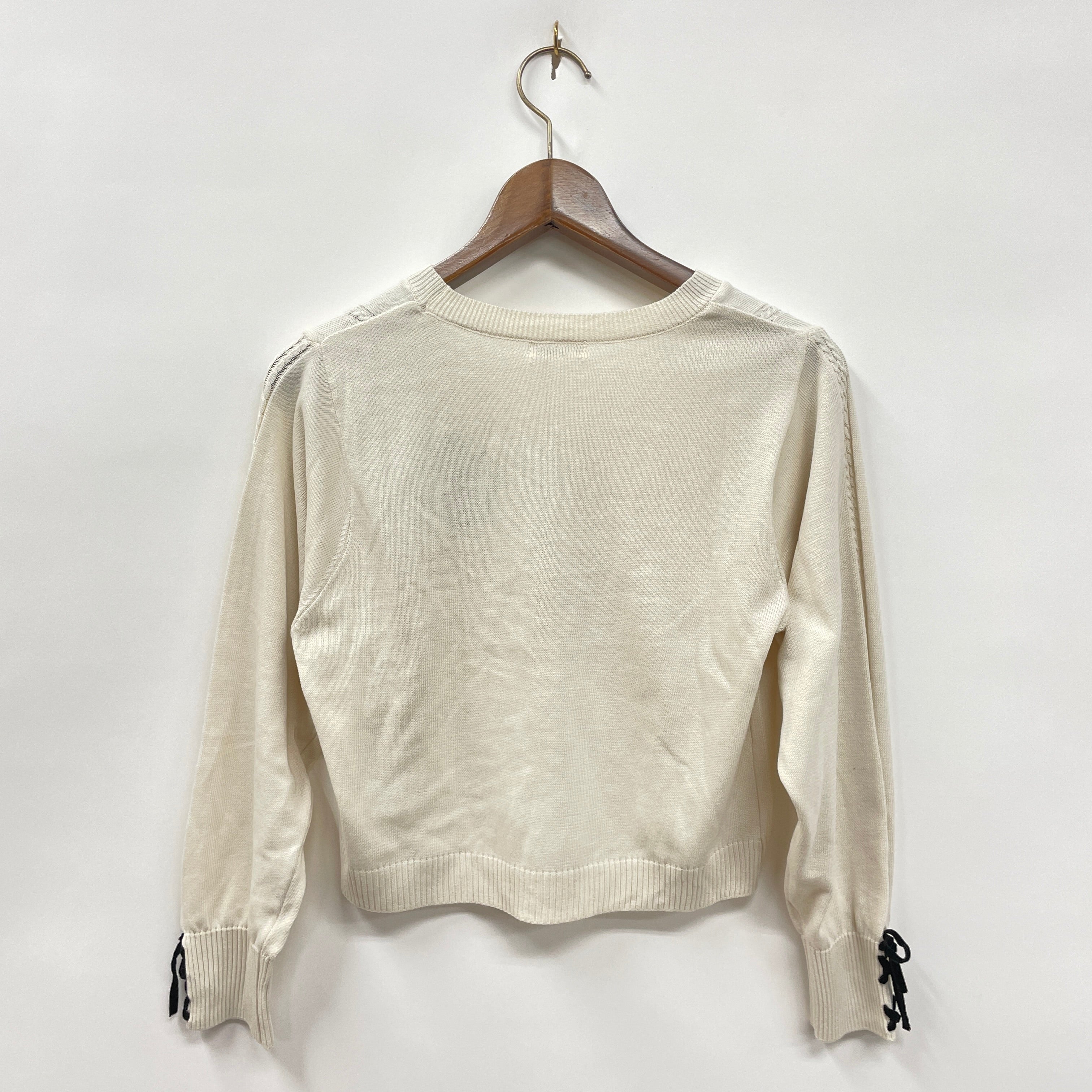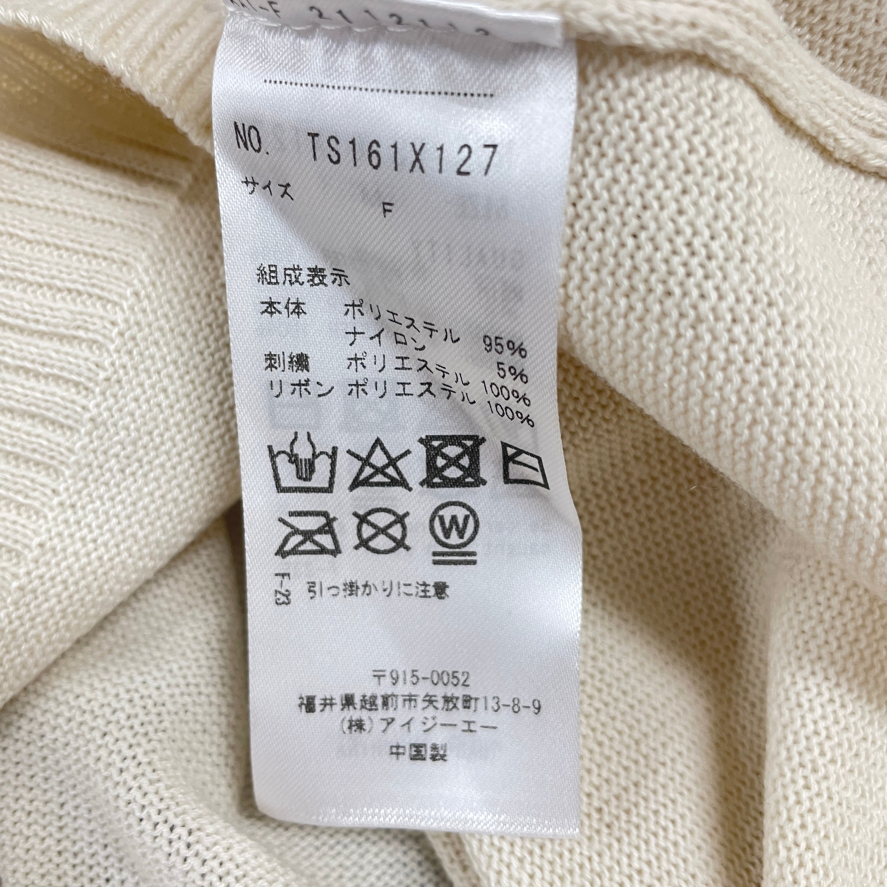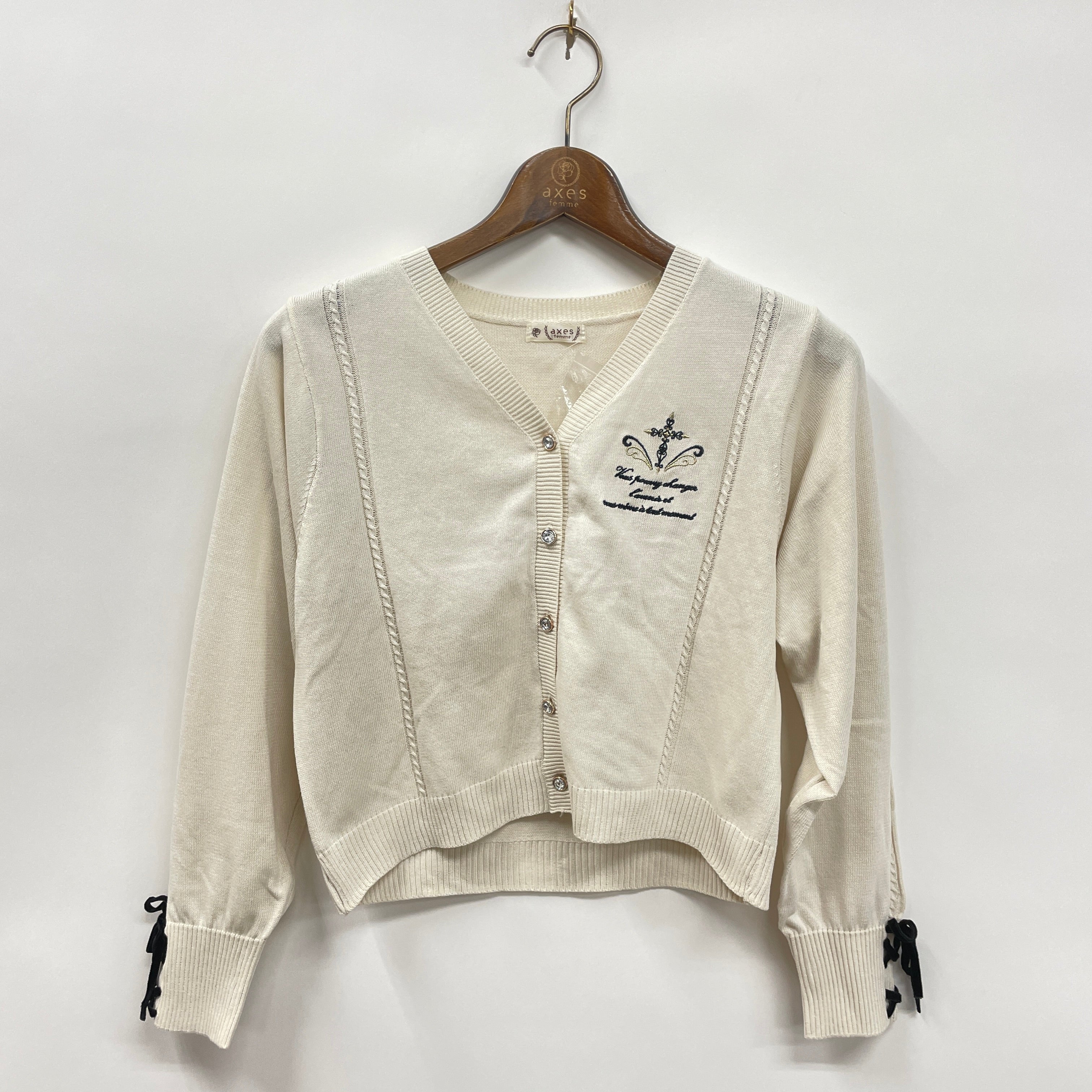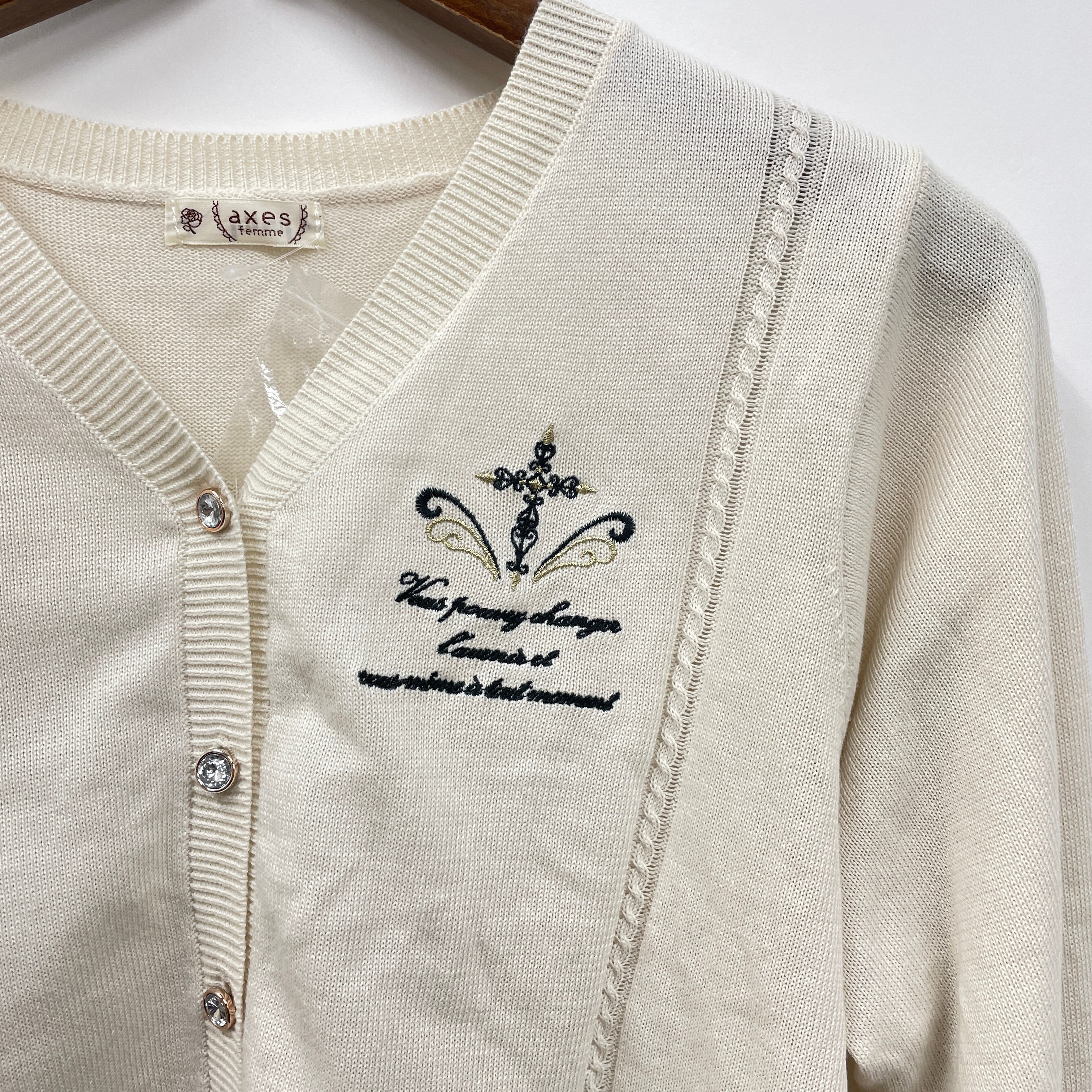 ラメ糸を使用した胸元のクロス刺繍がポイントのニットカーデです。