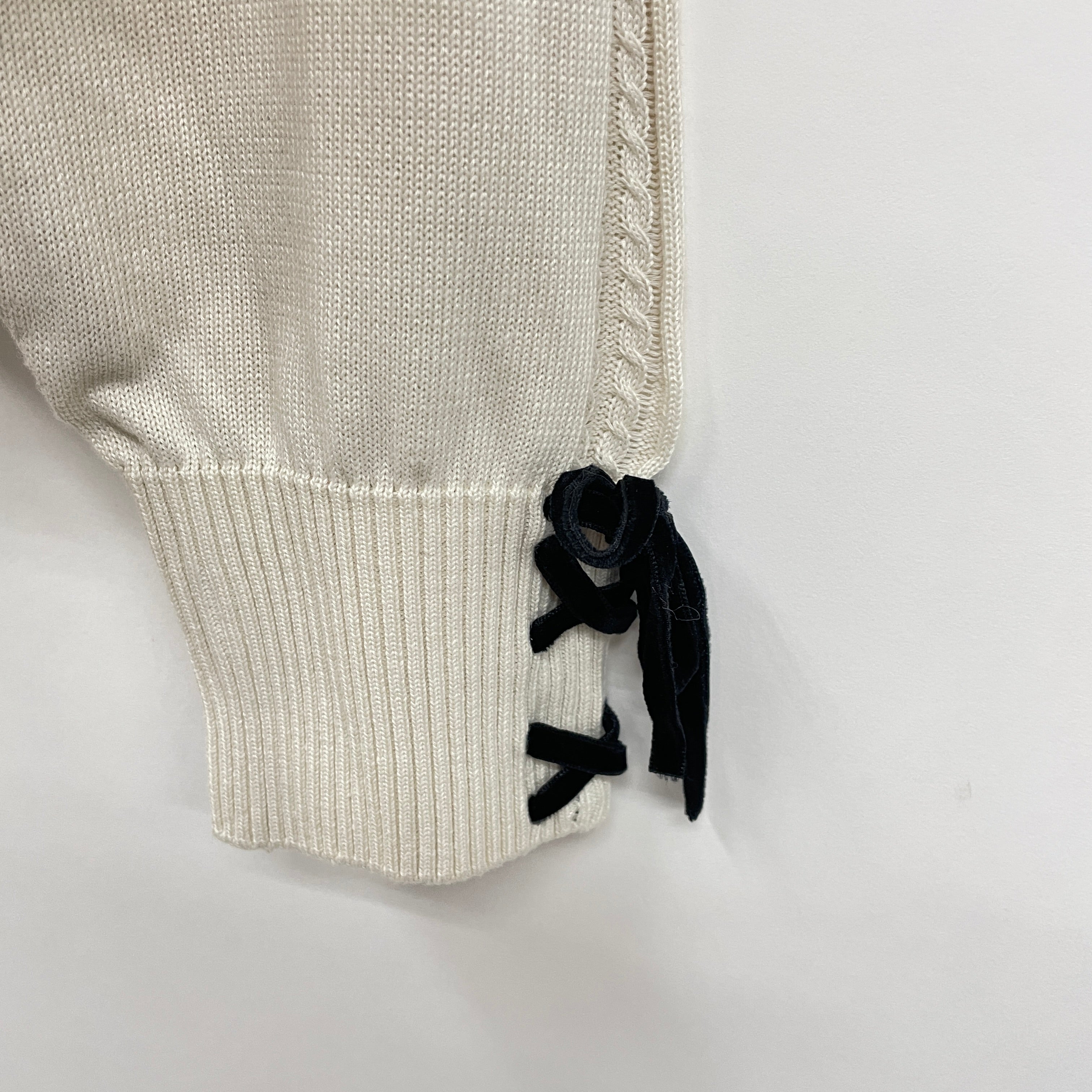 配色感のある袖口のベロアリボンが秋を感じるアイテムです。