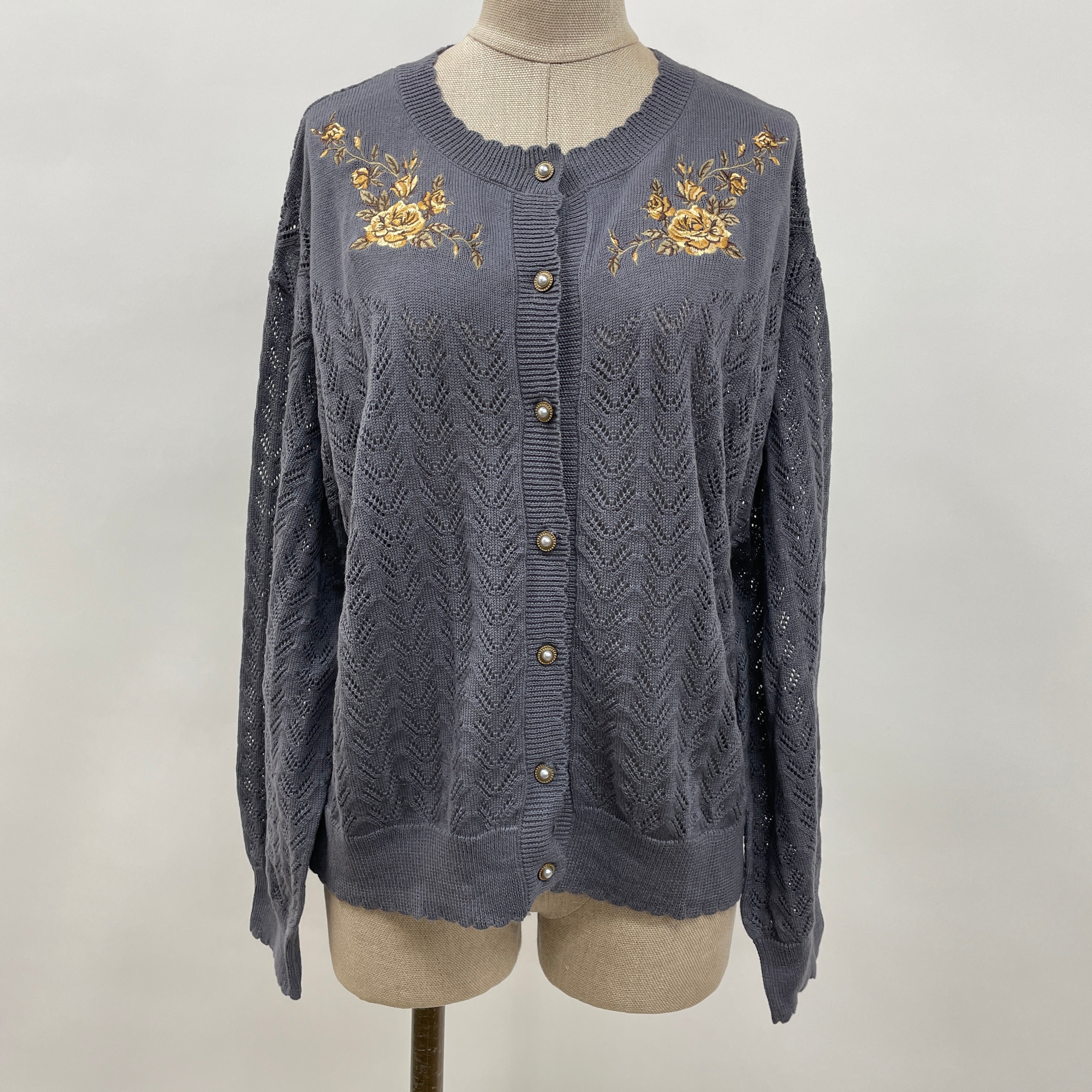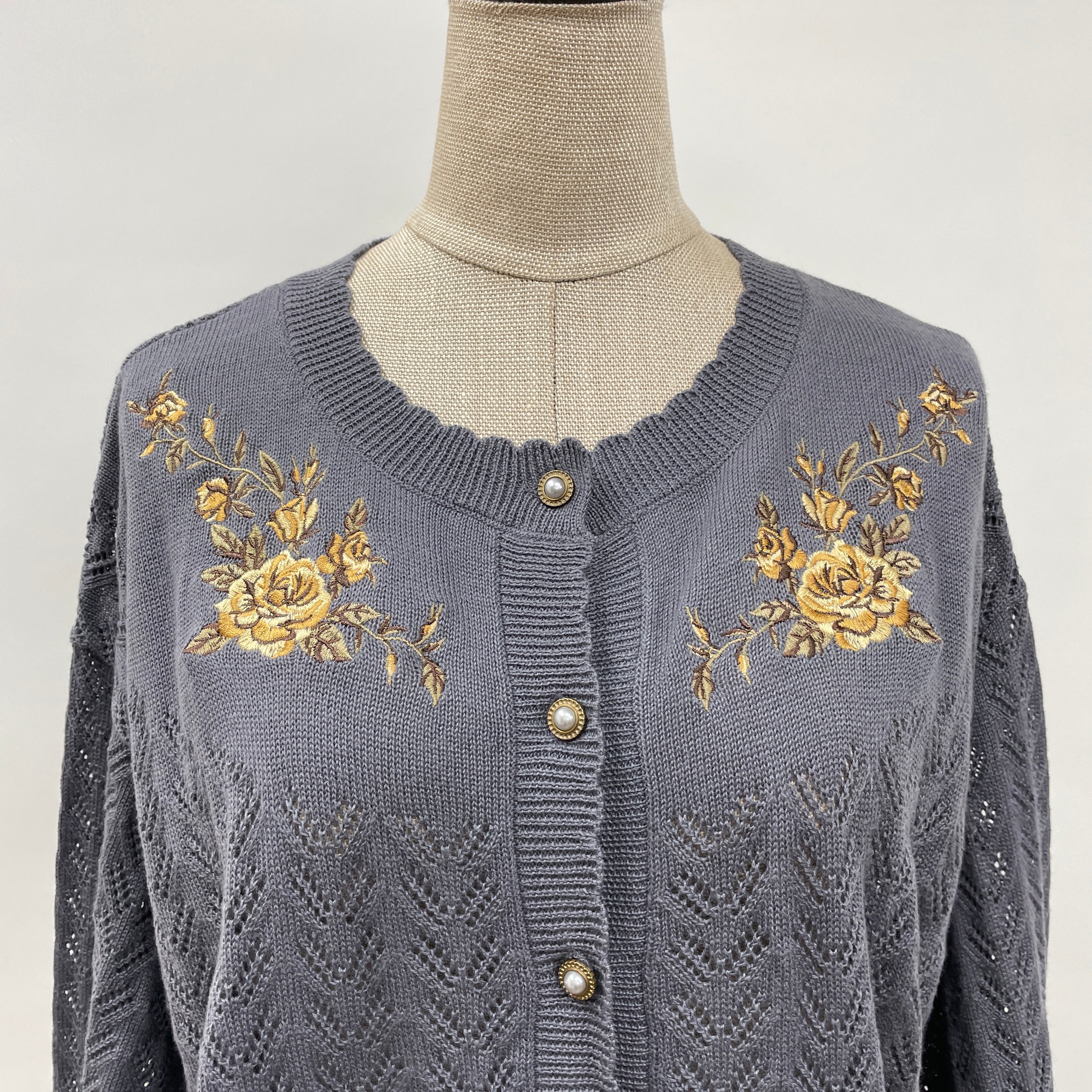 エレガントなローズ刺繍がフロントを飾るニットカーディガンです。