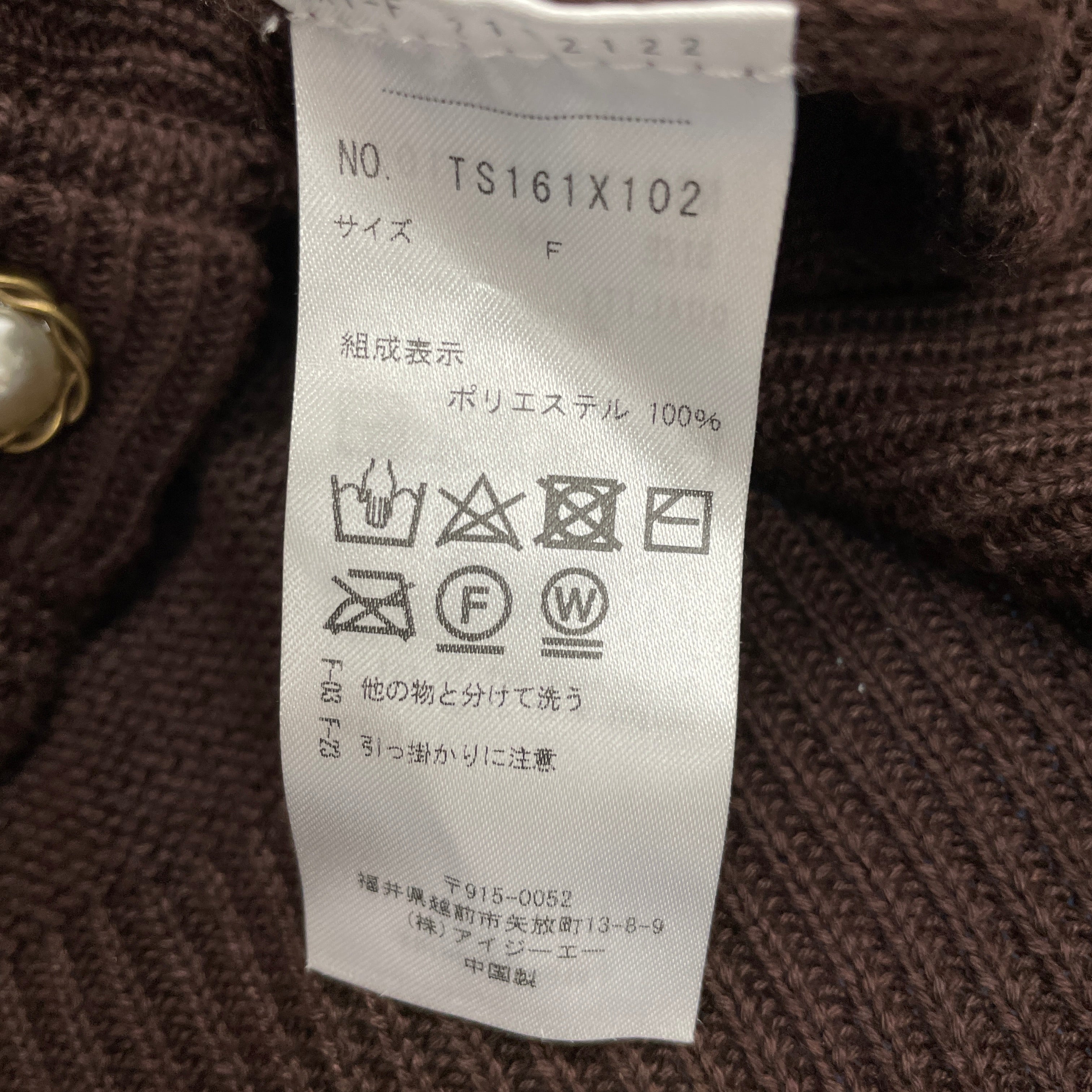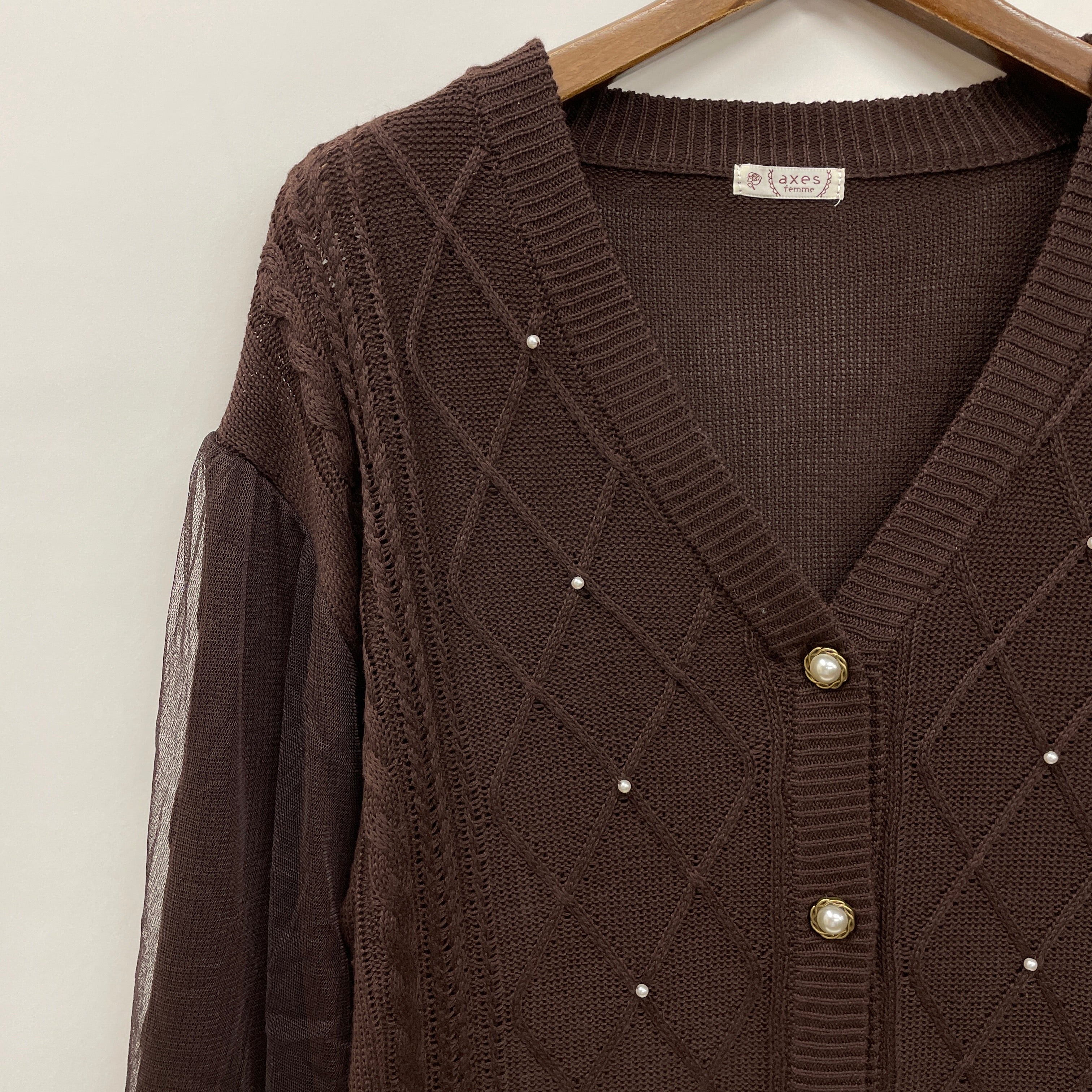 フロントはダイヤ柄の編地にパールをあしらった上品なデザイン。