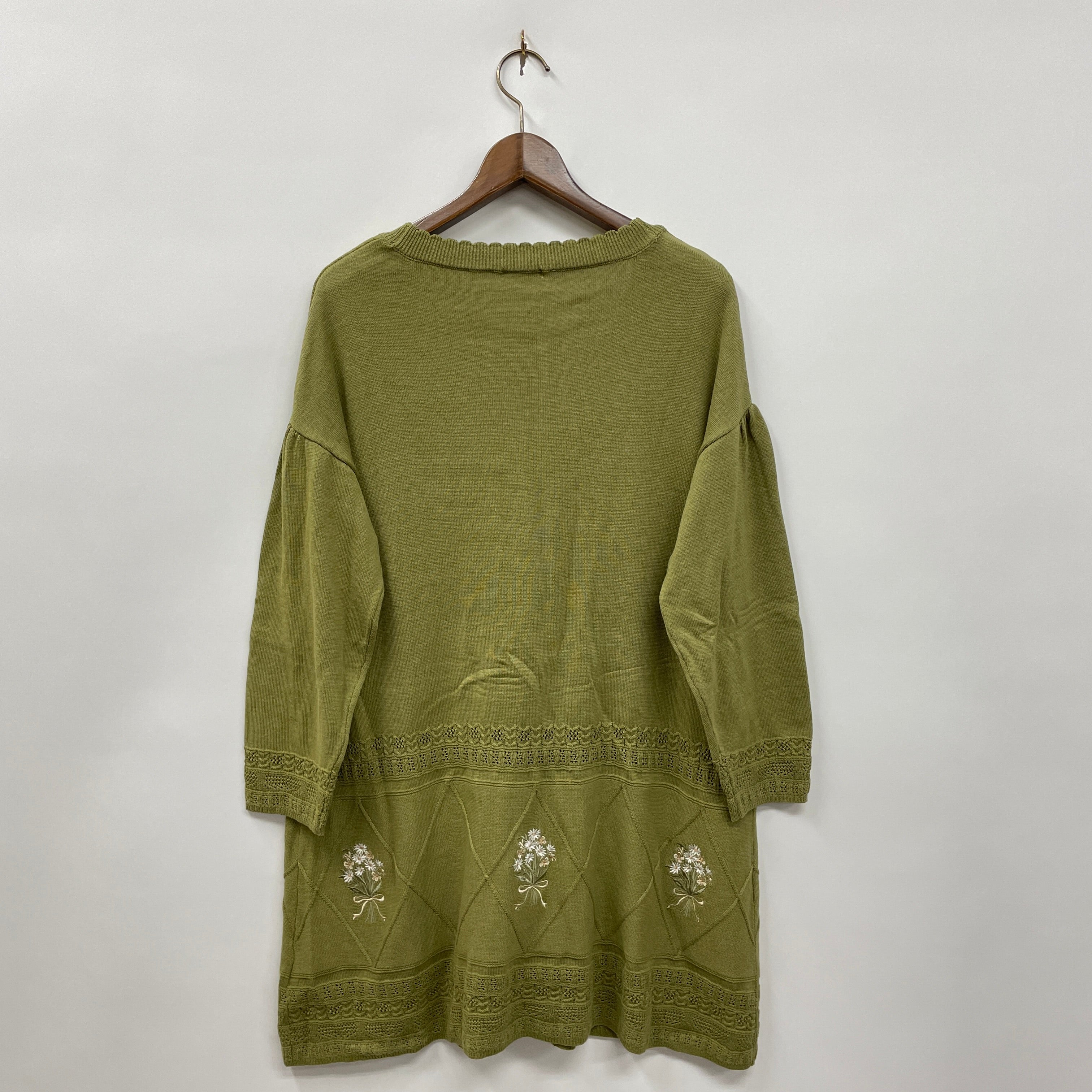 ブーケ刺繍ロングニットカーデ
