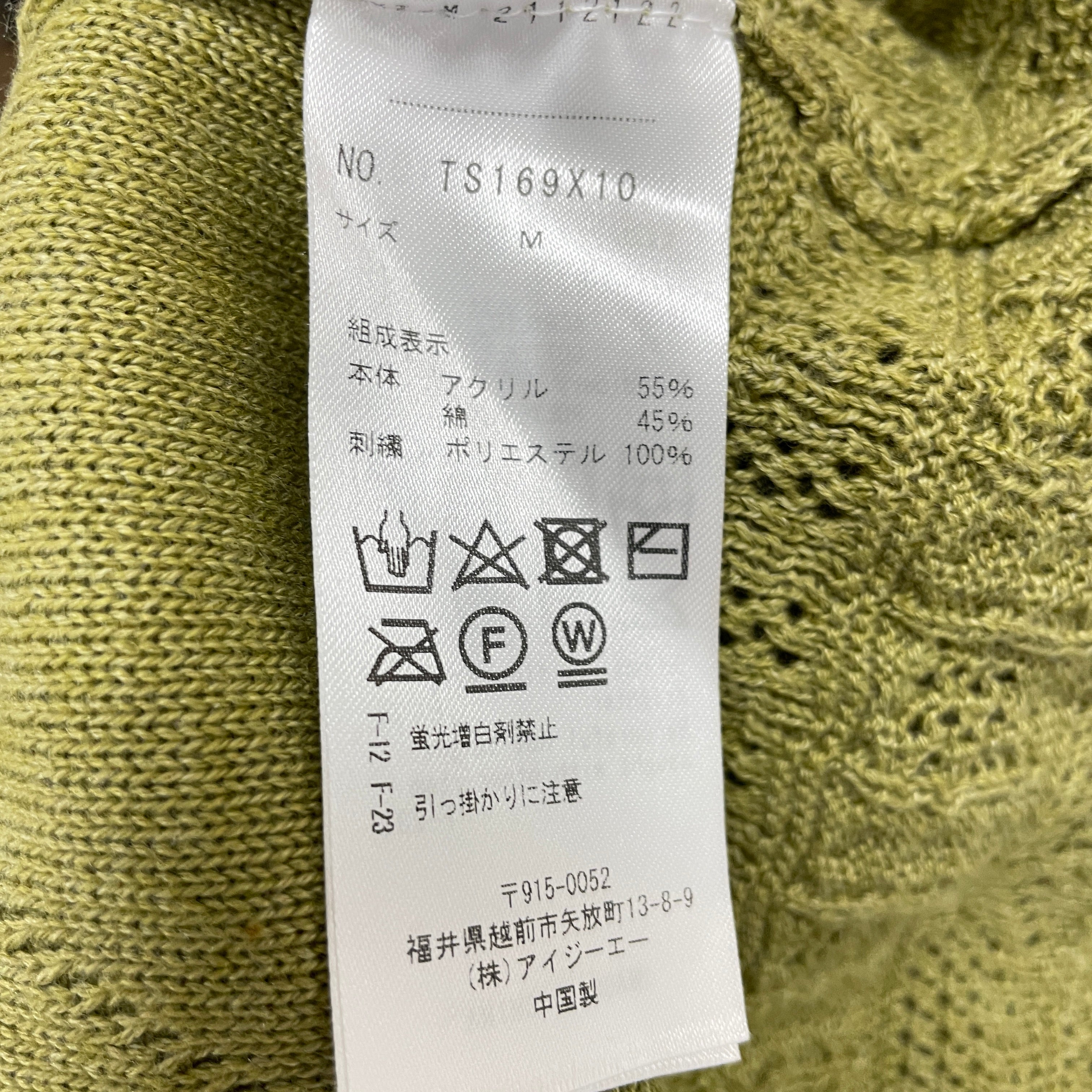 袖口と裾まわりには透かし編みが入り、軽やかで春らしいアイテムです。