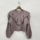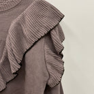 ハンドステッチ風のデザインが目を惹くフリルニットが登場です。